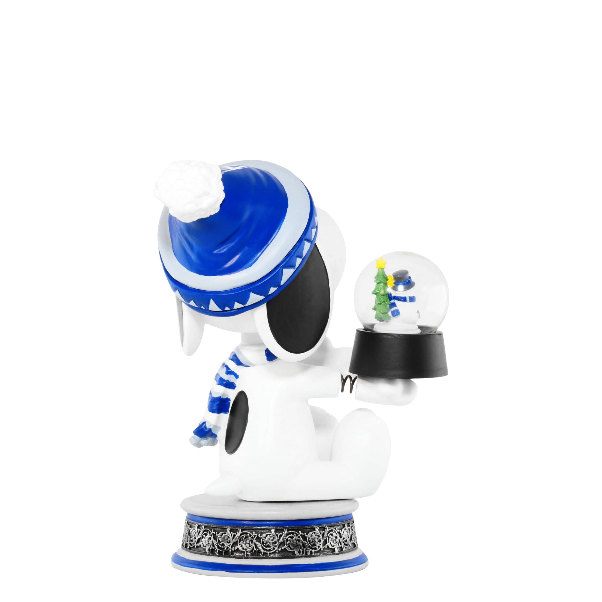 • Portrays Snoopy holding a snowglobe, bundled up in cozy winter gear for a festive seasonal look