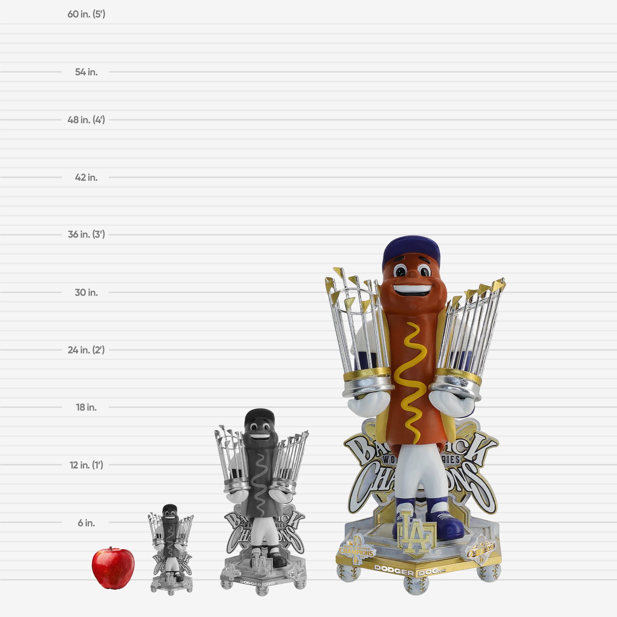 The Dodgers are Back To Back World Series Champions! Celebrate the dynasty in your collection with this Dodger Dog Los Angeles Dodgers 2025 Back To Back World Series Champions Celebration 3 Ft Mascot Bobblehead.