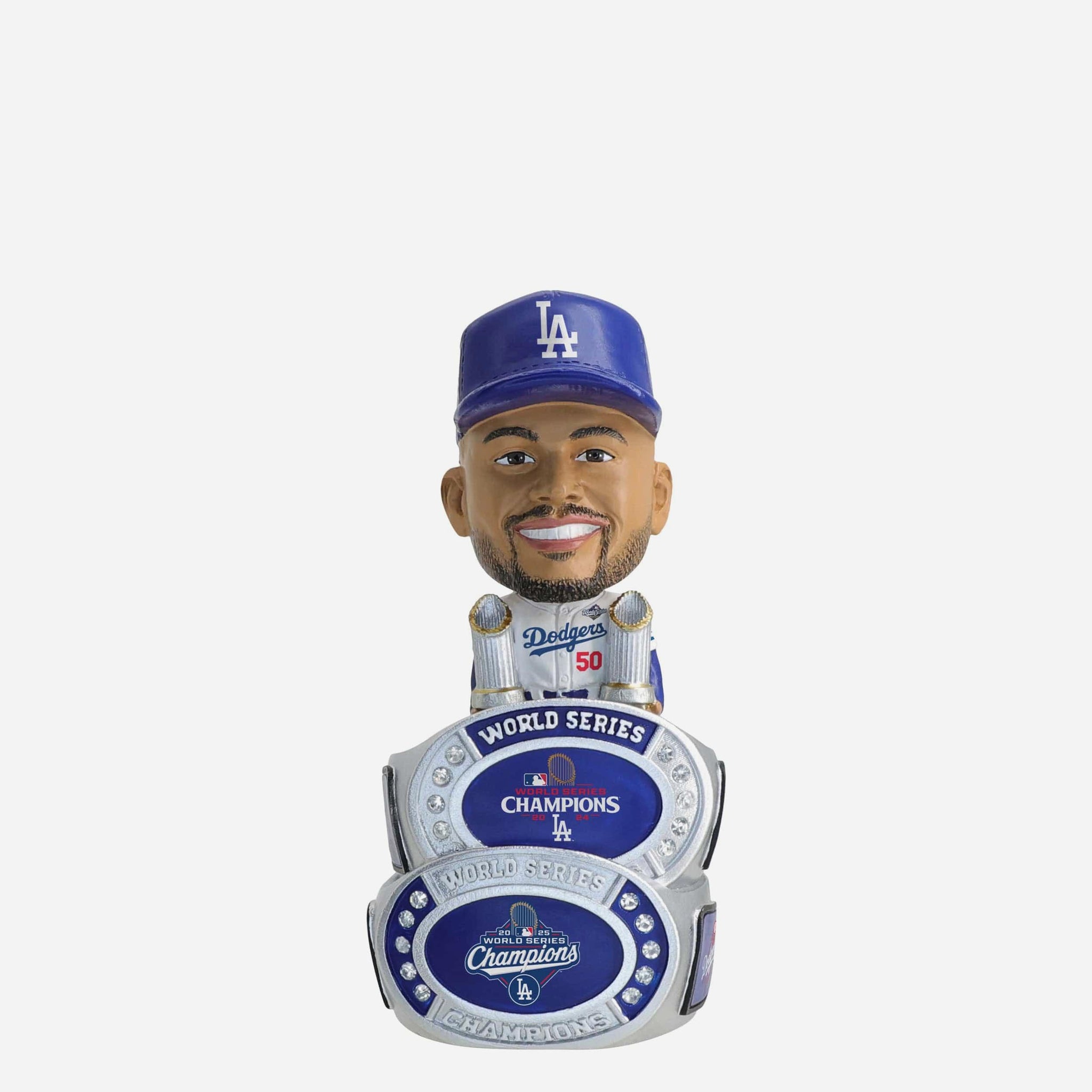 Add some championship bling to your bobble collection! We think you'll agree this Mookie Betts Los Angeles Dodgers 2025 Back To Back World Series Champions Mini Ring Base Bighead Bobblehead will be a VIP addition to your collection.