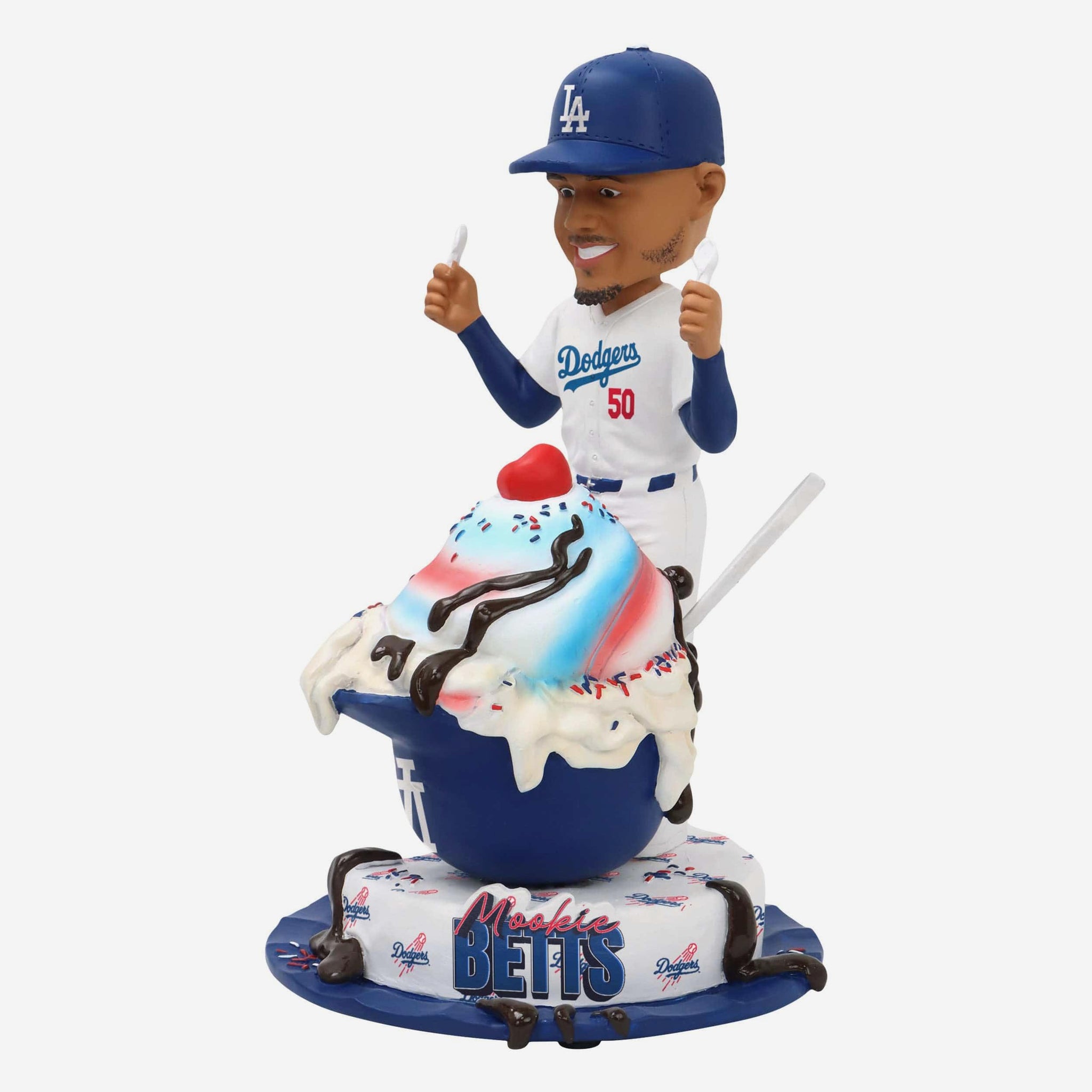 Your favorite player is serving up team spirit, one scoop at a time! The Mookie Betts Los Angeles Dodgers Ice Cream Helmet Bobblehead will be the cherry on top of your collection.