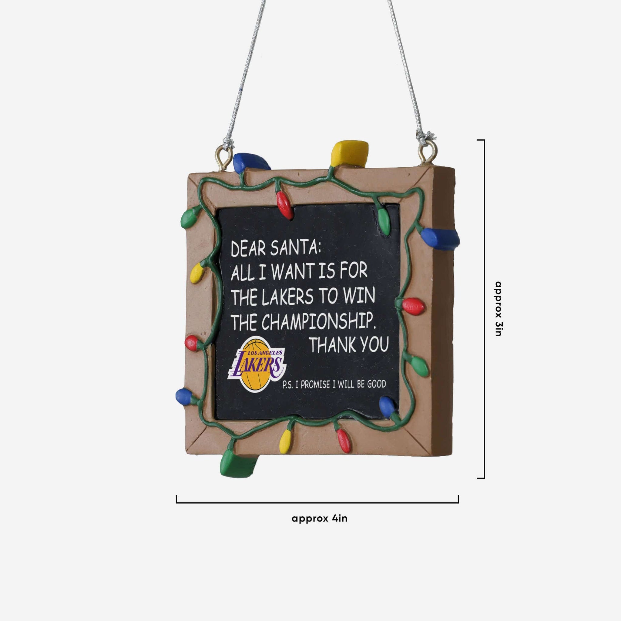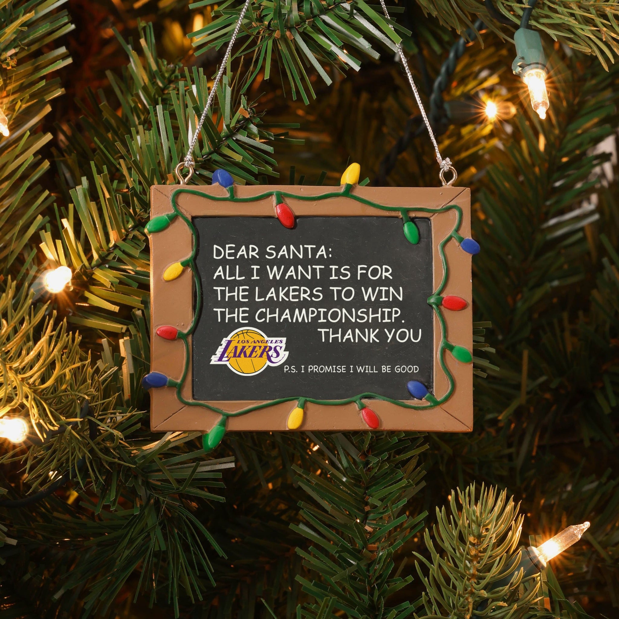 So, you made your list and sent it to jolly ol' Fanta Claus, asking him for a championship. But sometimes letters can get lost in the mail. Just in case, put this Los Angeles Lakers Chalkboard Sign Ornament on your tree to let him know how good you've been this year, and that all you want for the holidays is a trophy.