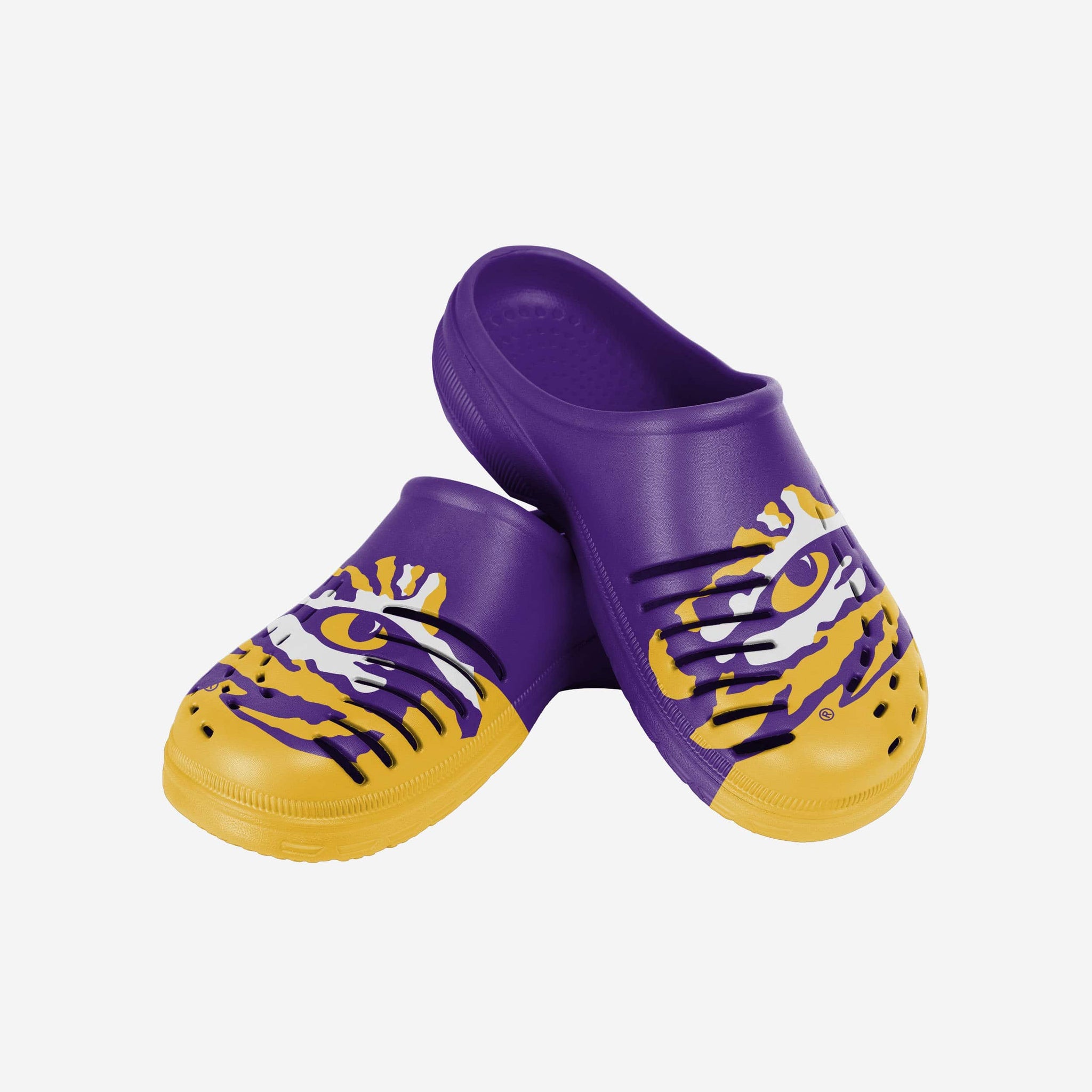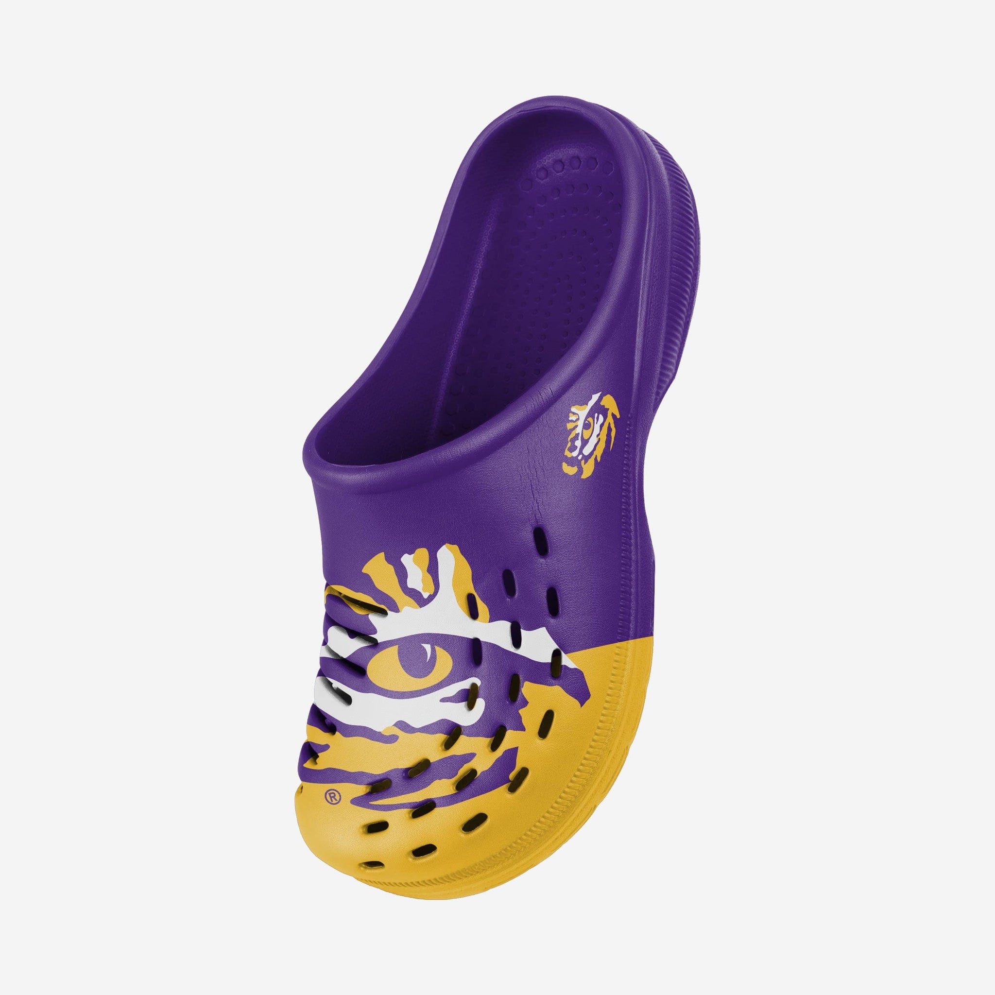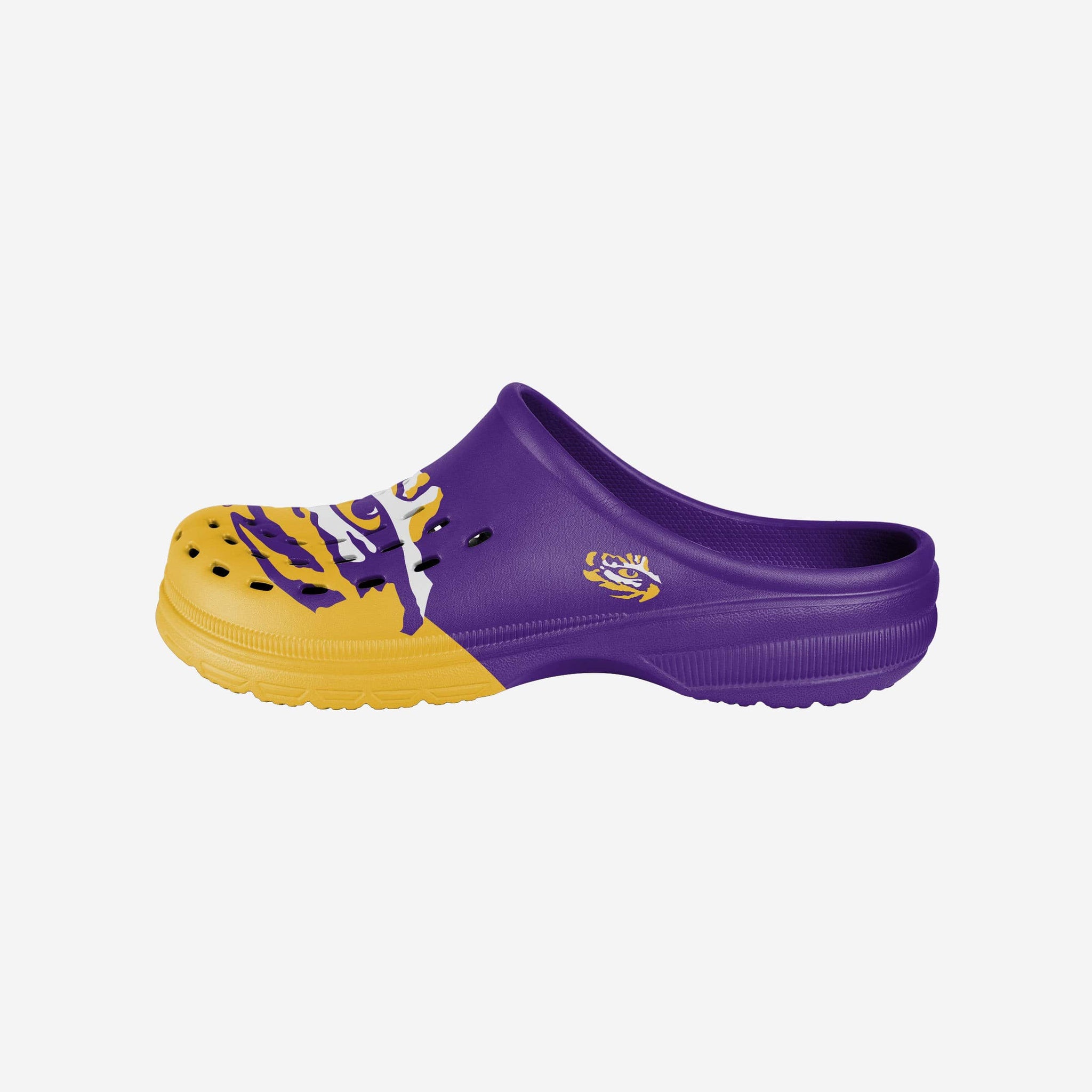 Whether you're walking around the house, in the park, or to your favorite seat in the stadium ready to cheer your team on to victory, do it in style by rocking these LSU Tigers Colorblock Big Logo Clogs!