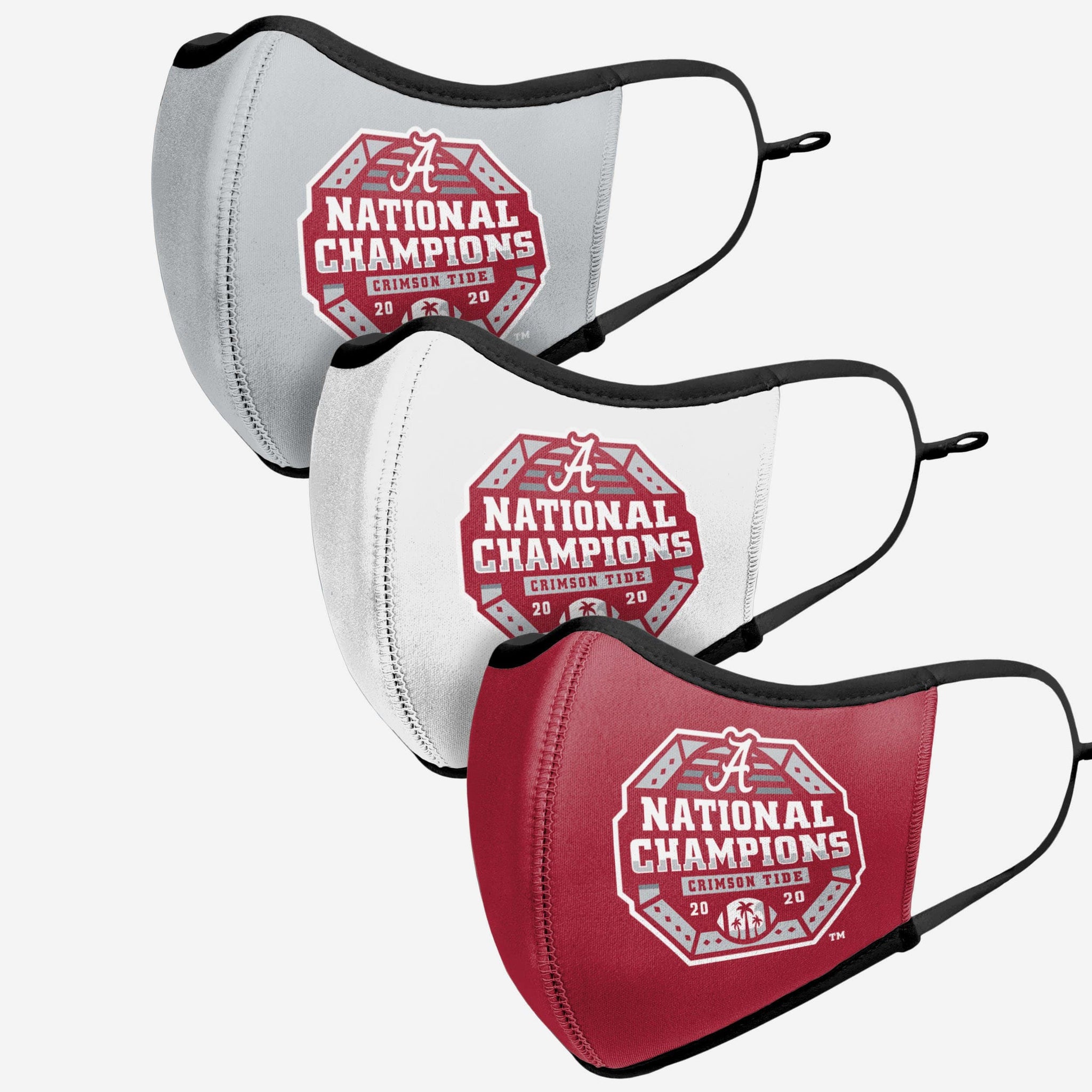 Cover up while you rep the champs in this Alabama Crimson Tide 2020 Football National Champions Sport 3 Pack face covering!