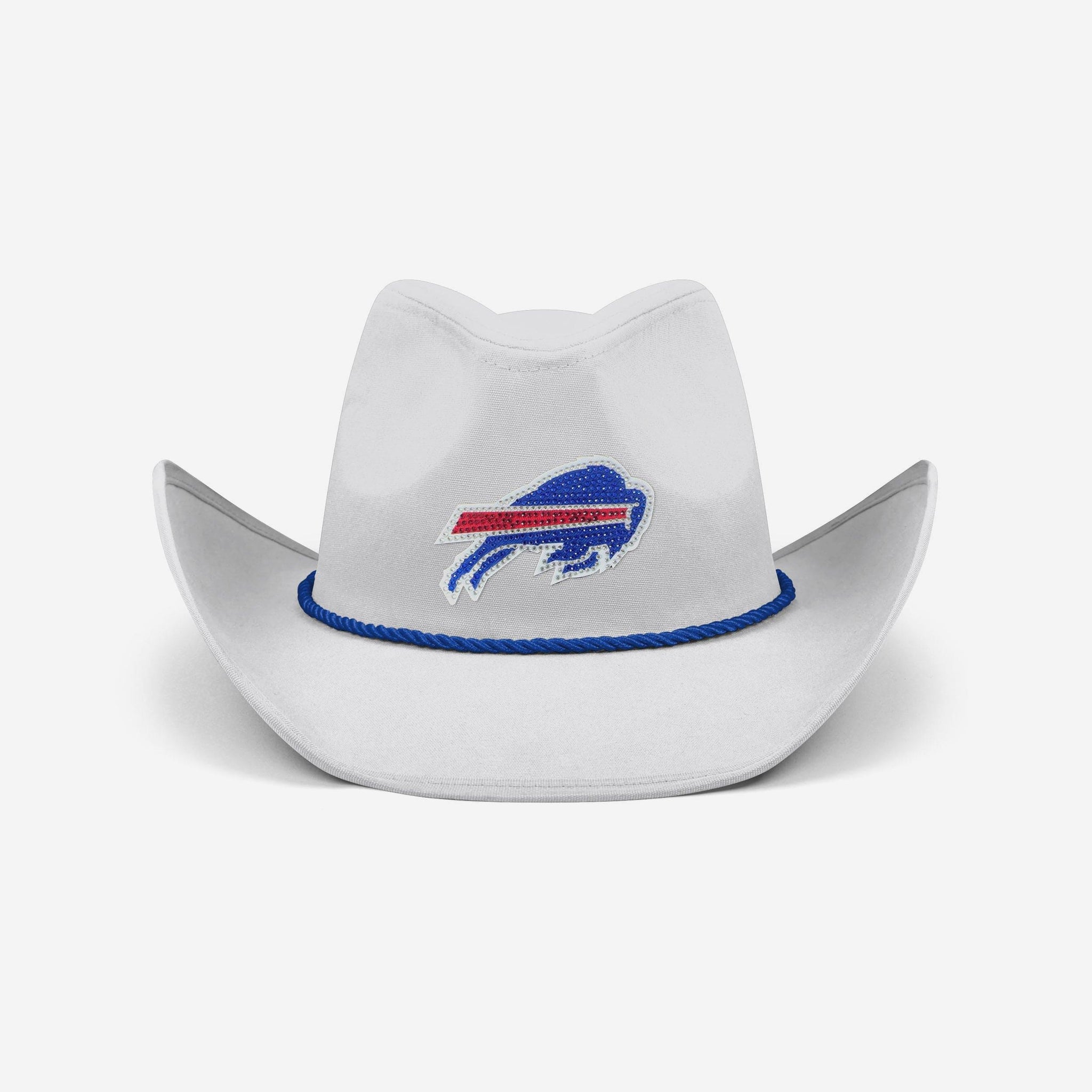 Howdy partner! Top off your fan fit and sparkle with standout style in this Buffalo Bills White Rhinestone Cowboy Hat.