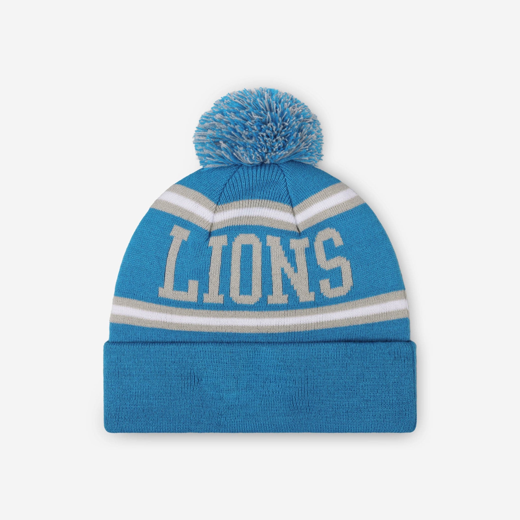 Detroit Lions Primary Logo Stripe Pom Beanie