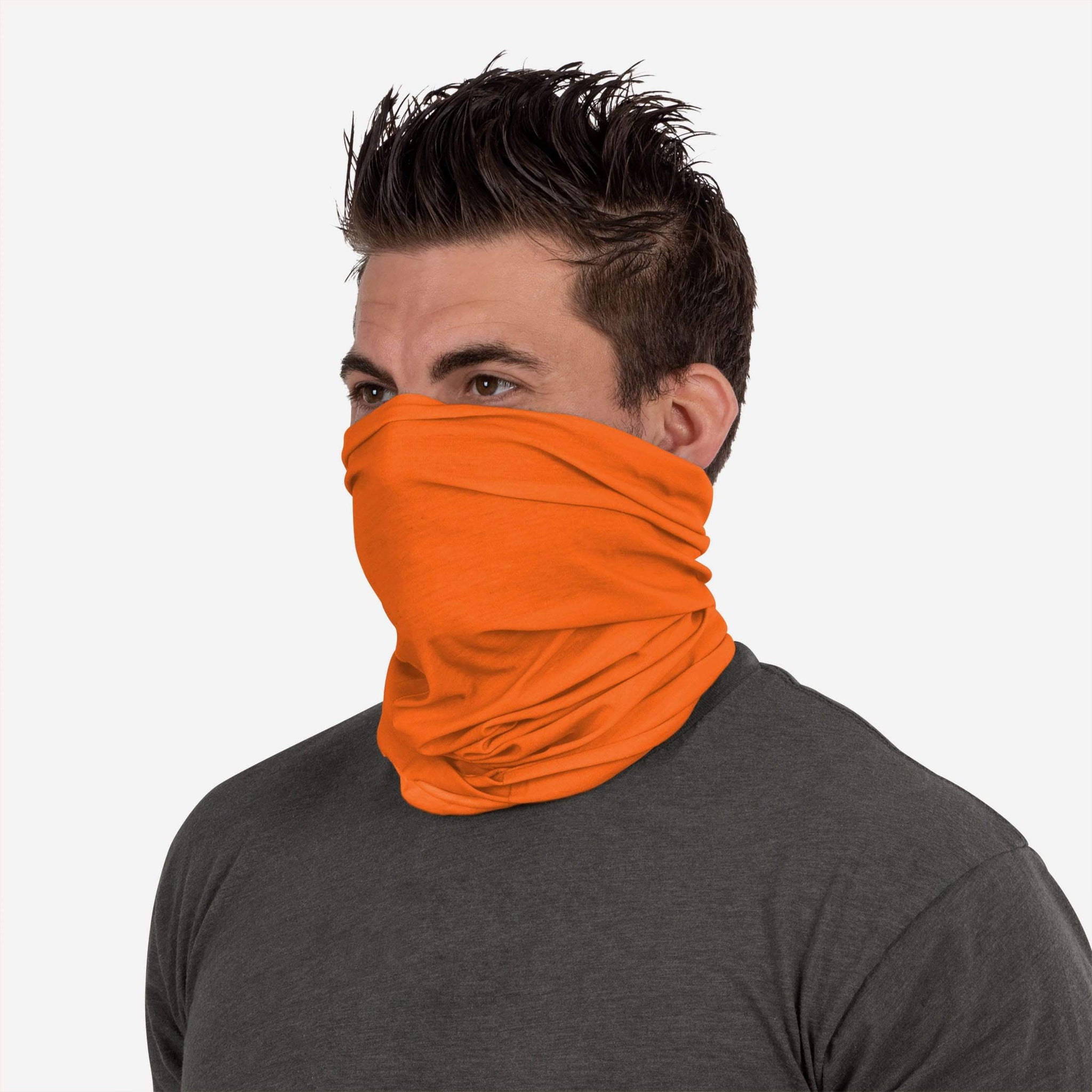 This Solid Orange Gaiter Scarf will keep your neck covered with lightweight, breathable material whenever you put it on.