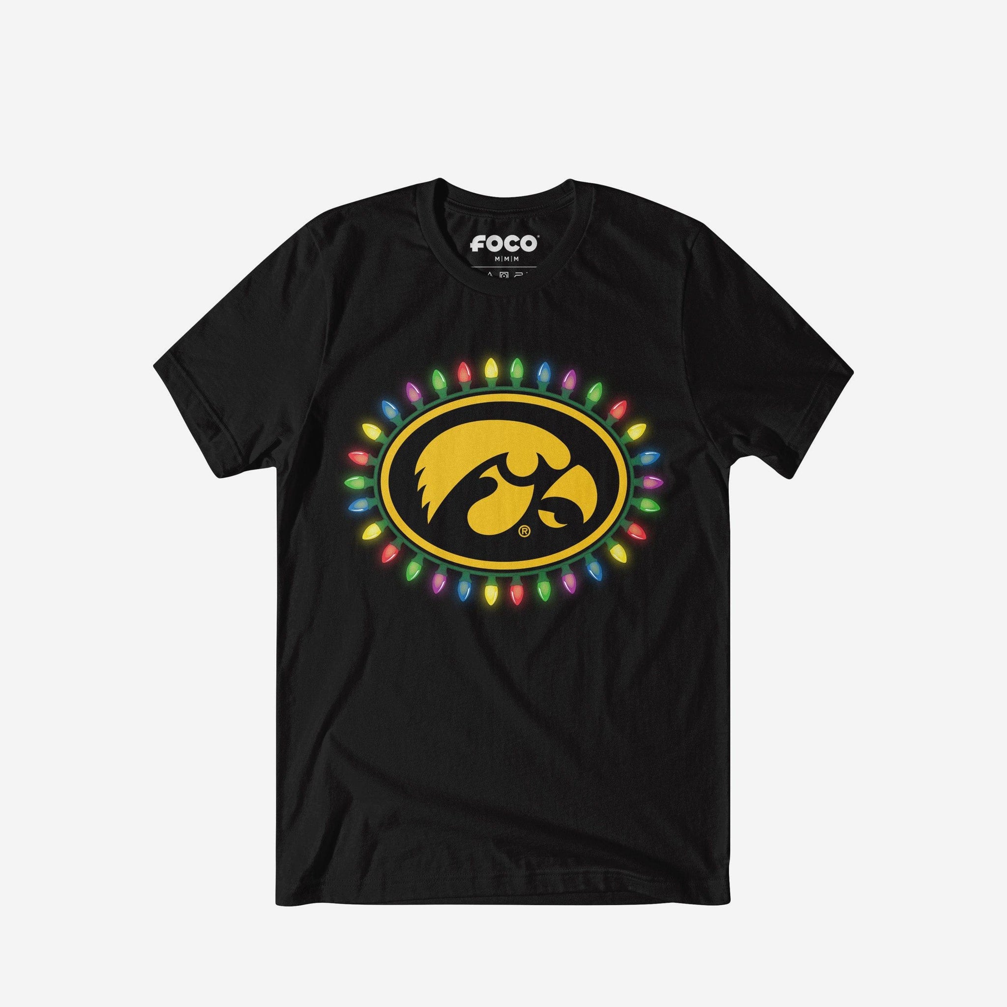 Merry, bright, and full of team spirit! Let your fandom light the way to a legendary holiday season with this Iowa Hawkeyes Primary Logo Holiday Lights T-Shirt.