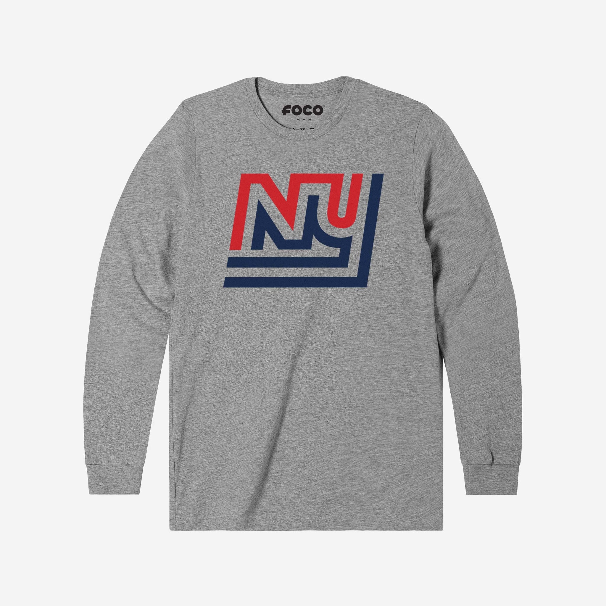 New York Giants 1975 Retro Logo Long Sleeve T-Shirt FOCO Athletic Heather S - FOCO.com