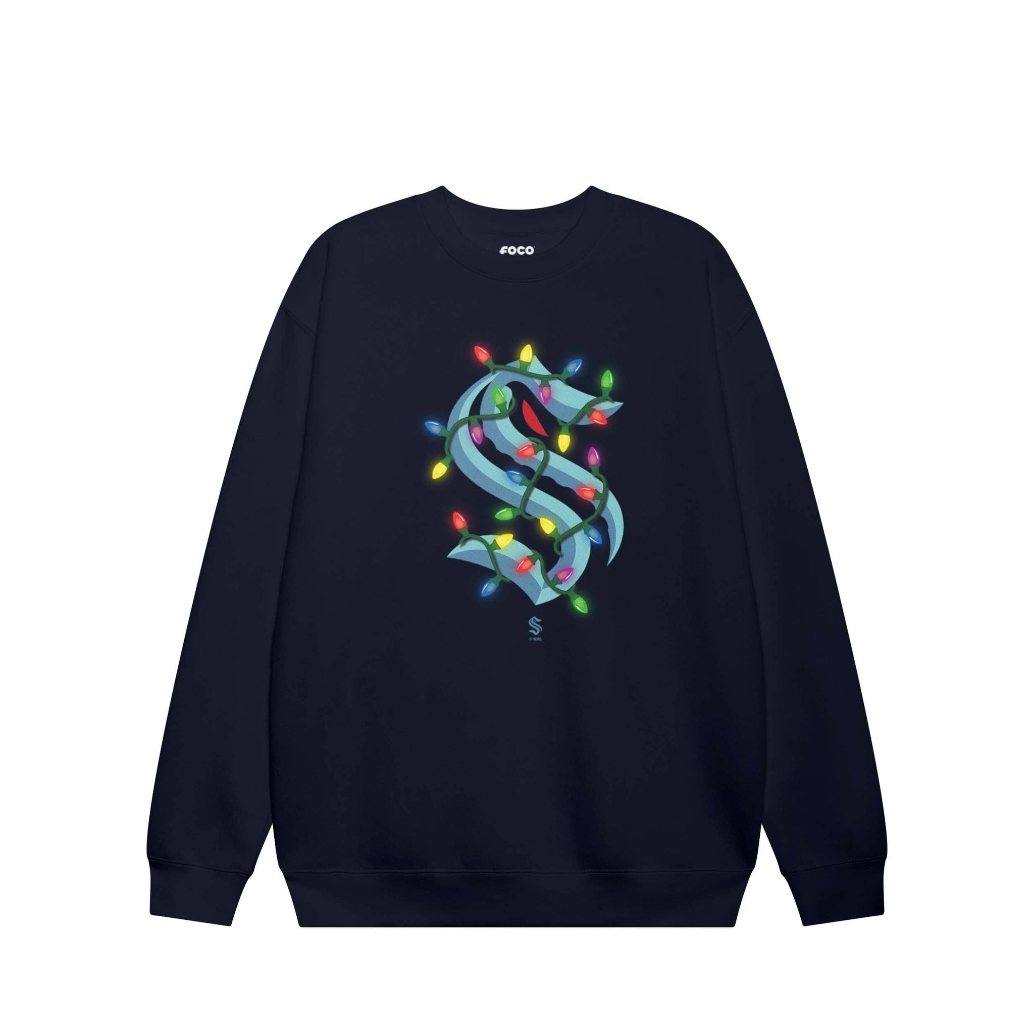 The holidays shine brighter when you’re repping your team! Add some festive fun to your fan fit with the Seattle Kraken Primary Logo Holiday Lights Crew Neck Sweatshirt.