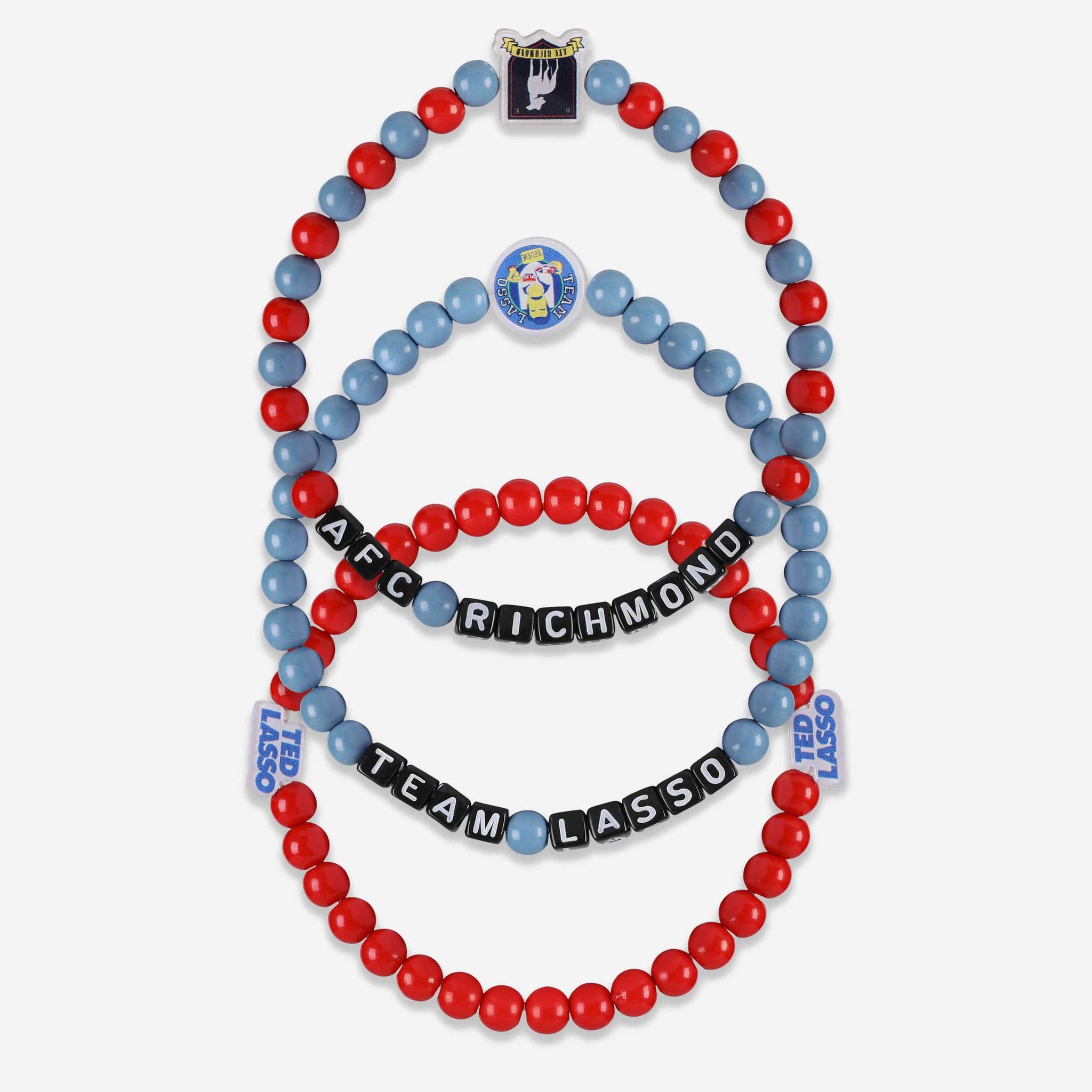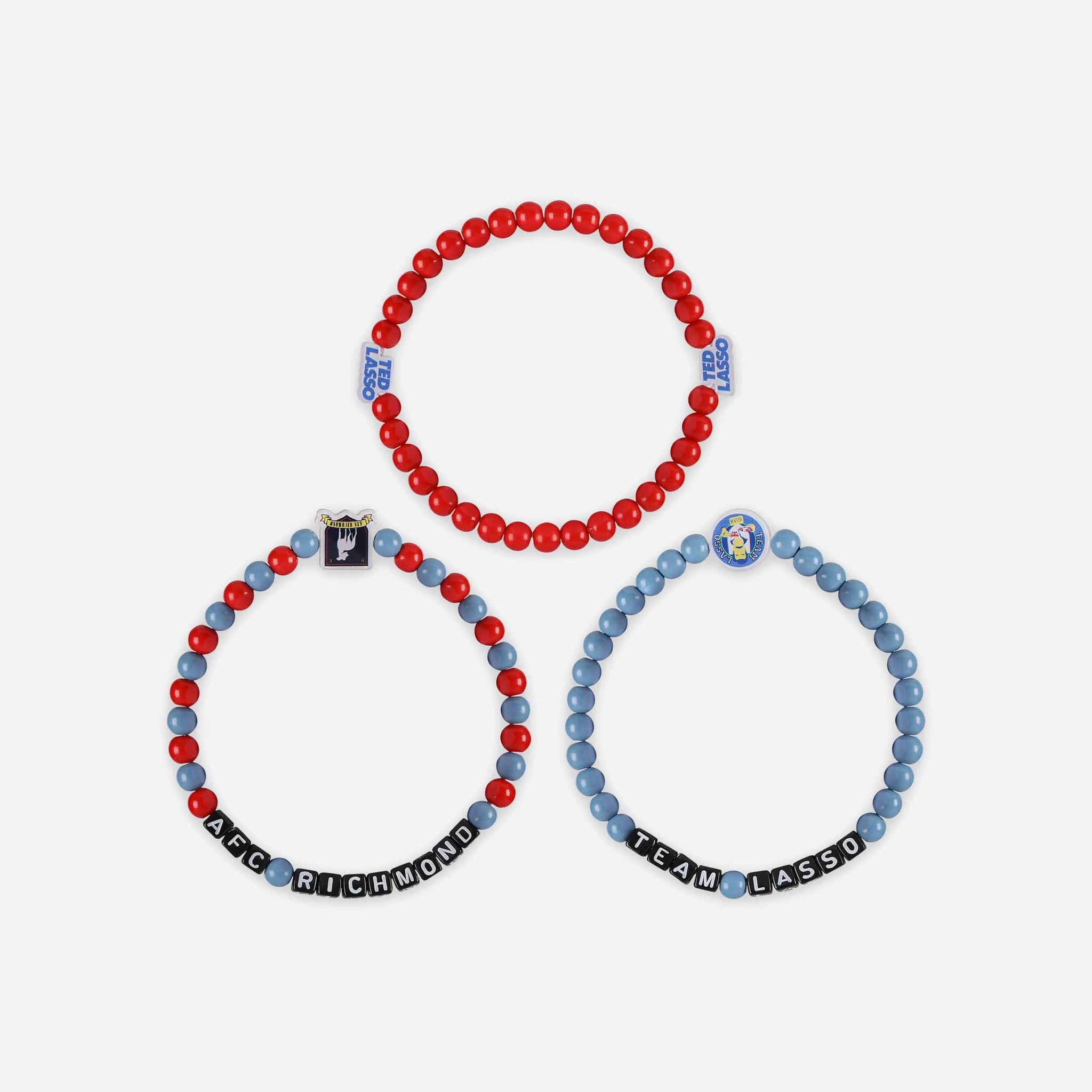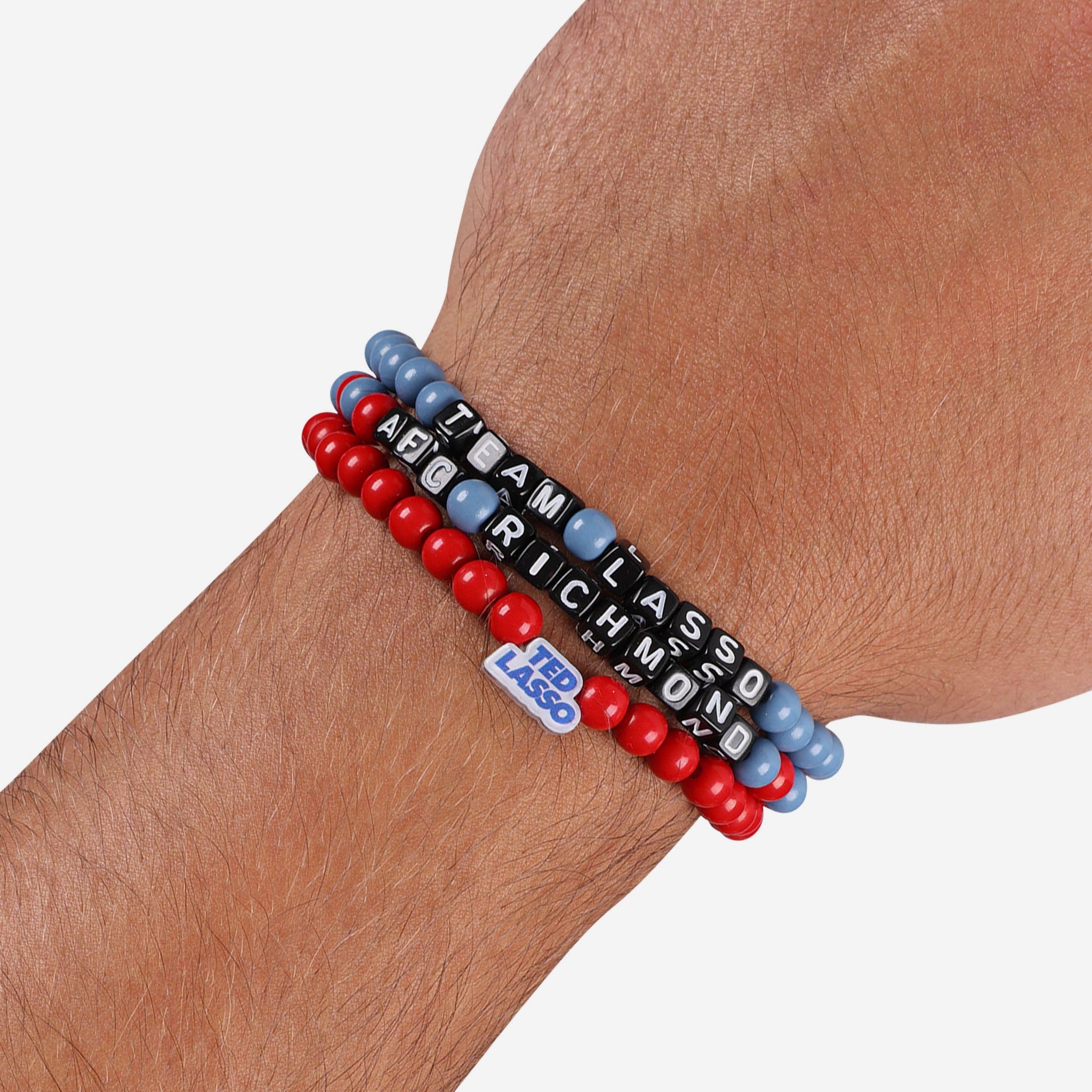 Step up your fan fashion sense with this AFC Richmond Ted Lasso™ 3 Pack Beaded Friendship Bracelet. These matching friendship bracelets have an all-over design and thematic displays, which makes them the perfect way to show your support for Ted Lasso™ and show off your unique sense of style.