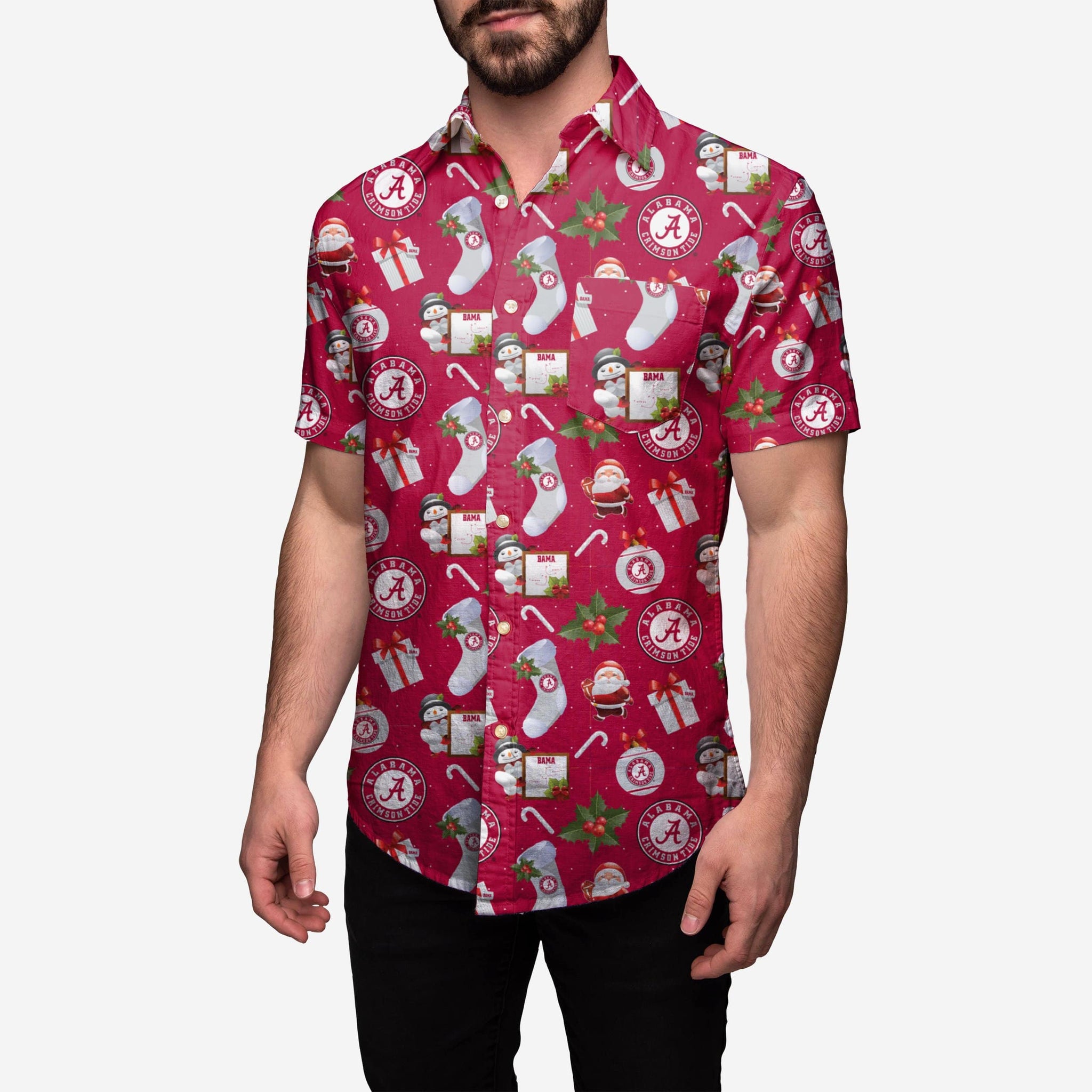Alabama Crimson Tide Christmas Explosion Button Up Shirt FOCO M - FOCO.com