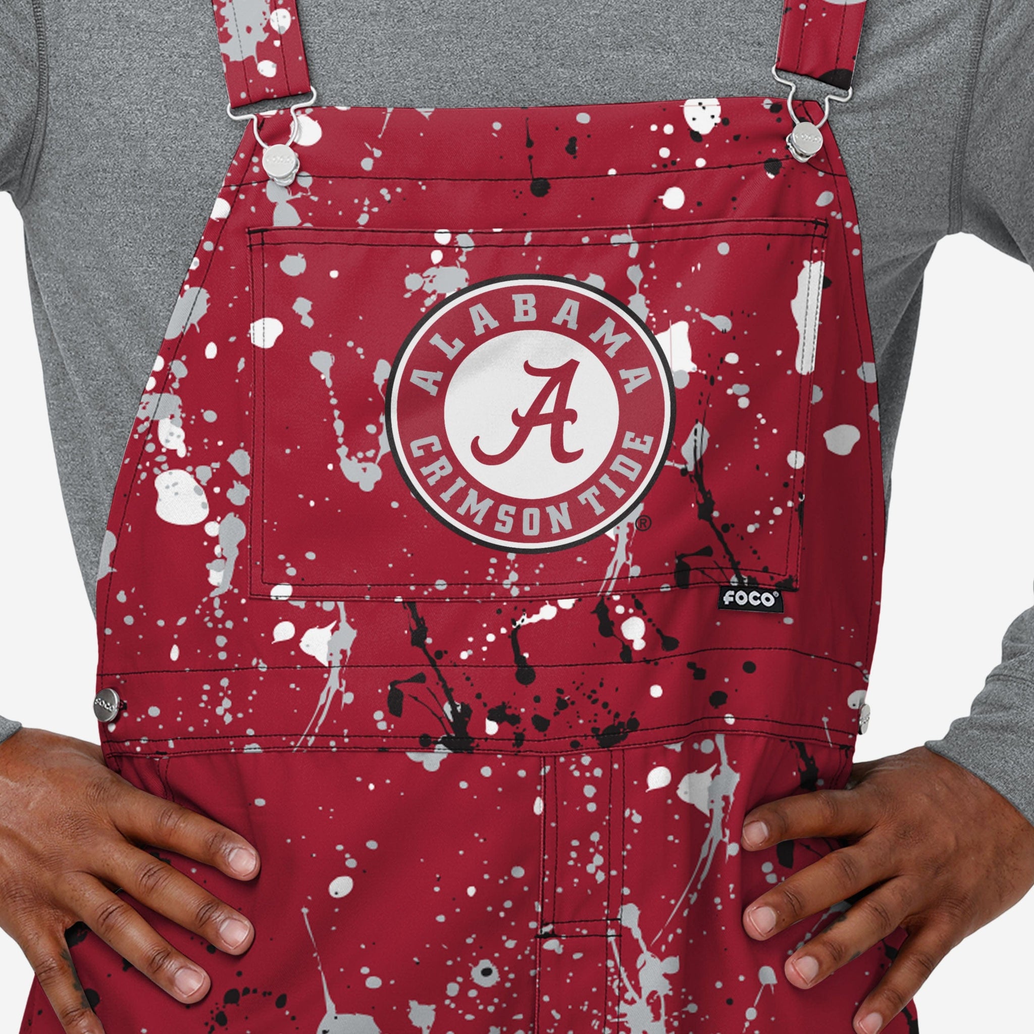 Alabama Crimson Tide Mens Paint Splatter Bib Overalls FOCO S - FOCO.com