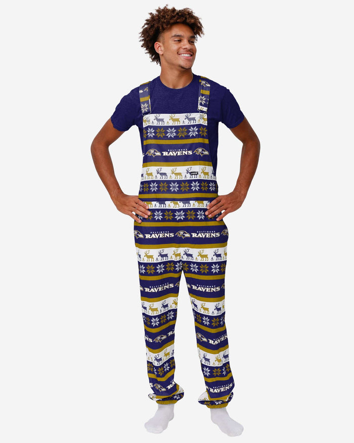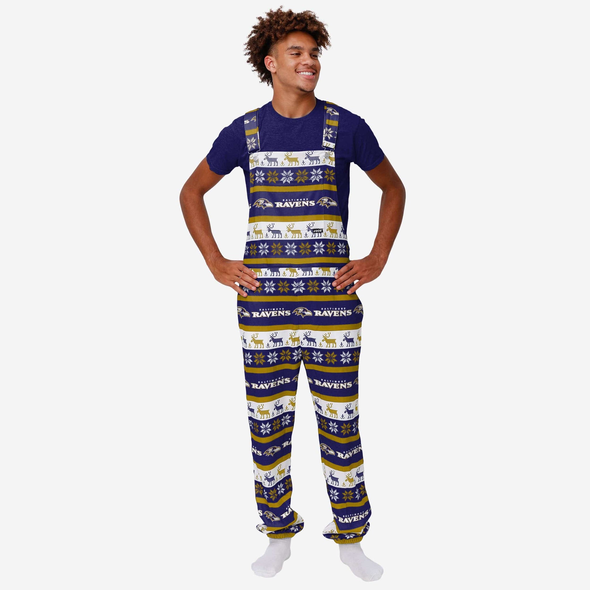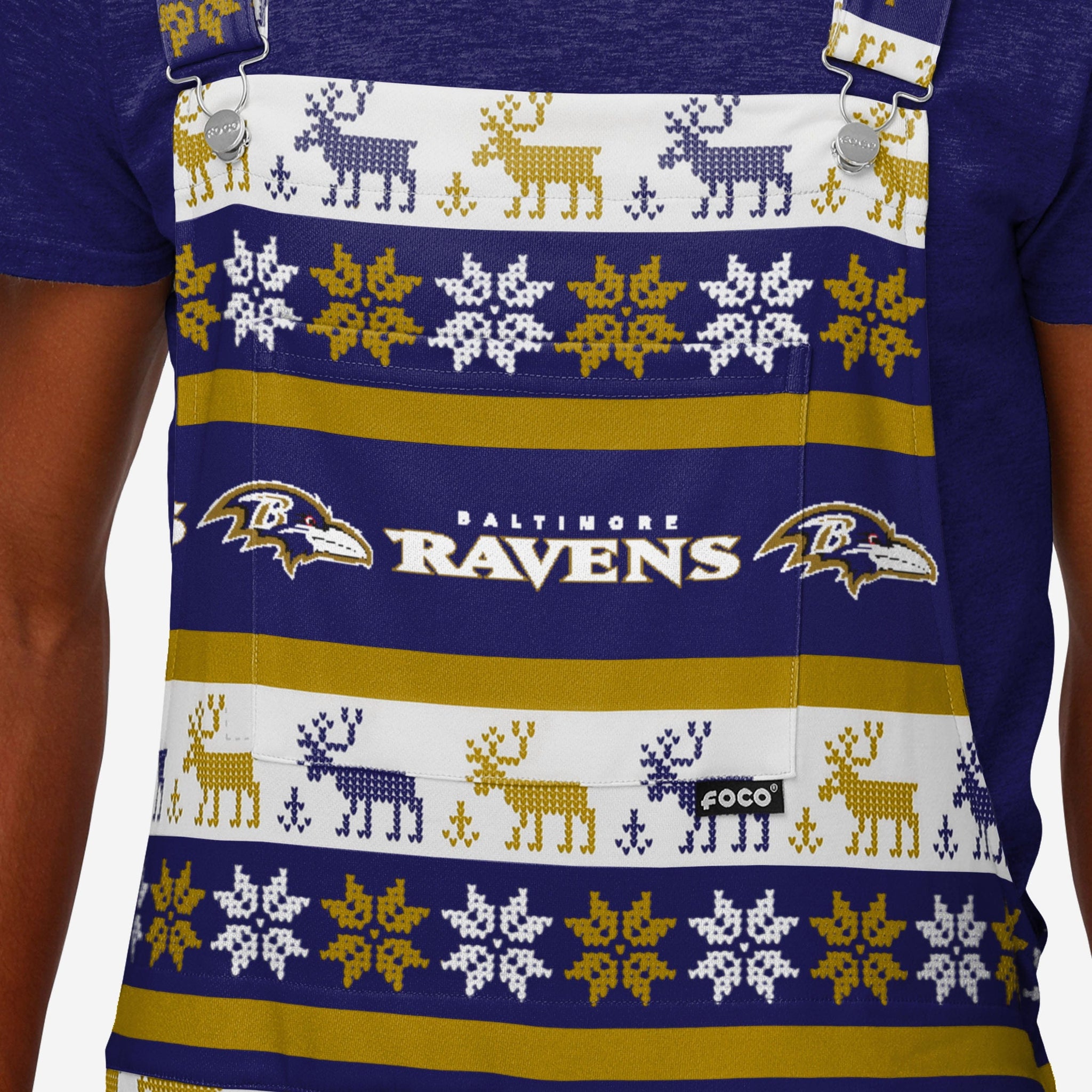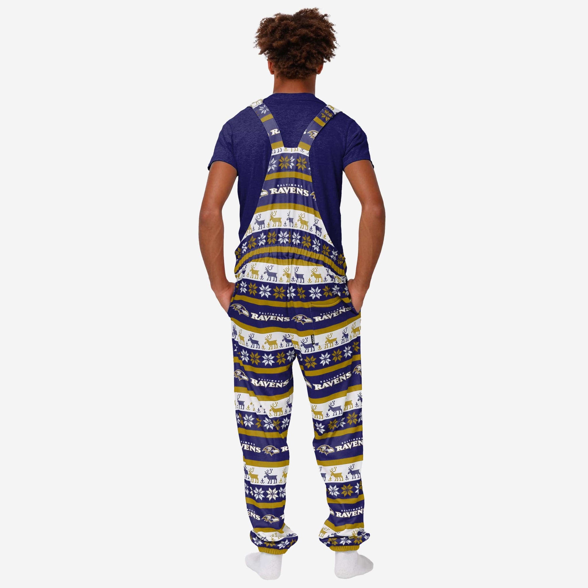 Show your team spirit in these stylish and comfortable Baltimore Ravens Men's Ugly Home Gating Bib Overalls. With their all-over team-colored design and bold team logo display, these overalls are the perfect way to show your support for the Baltimore Ravens while showing off some beautiful style akin to your favorite ugly sweater that's perfect for the holidays, but will help you stand out year-round.