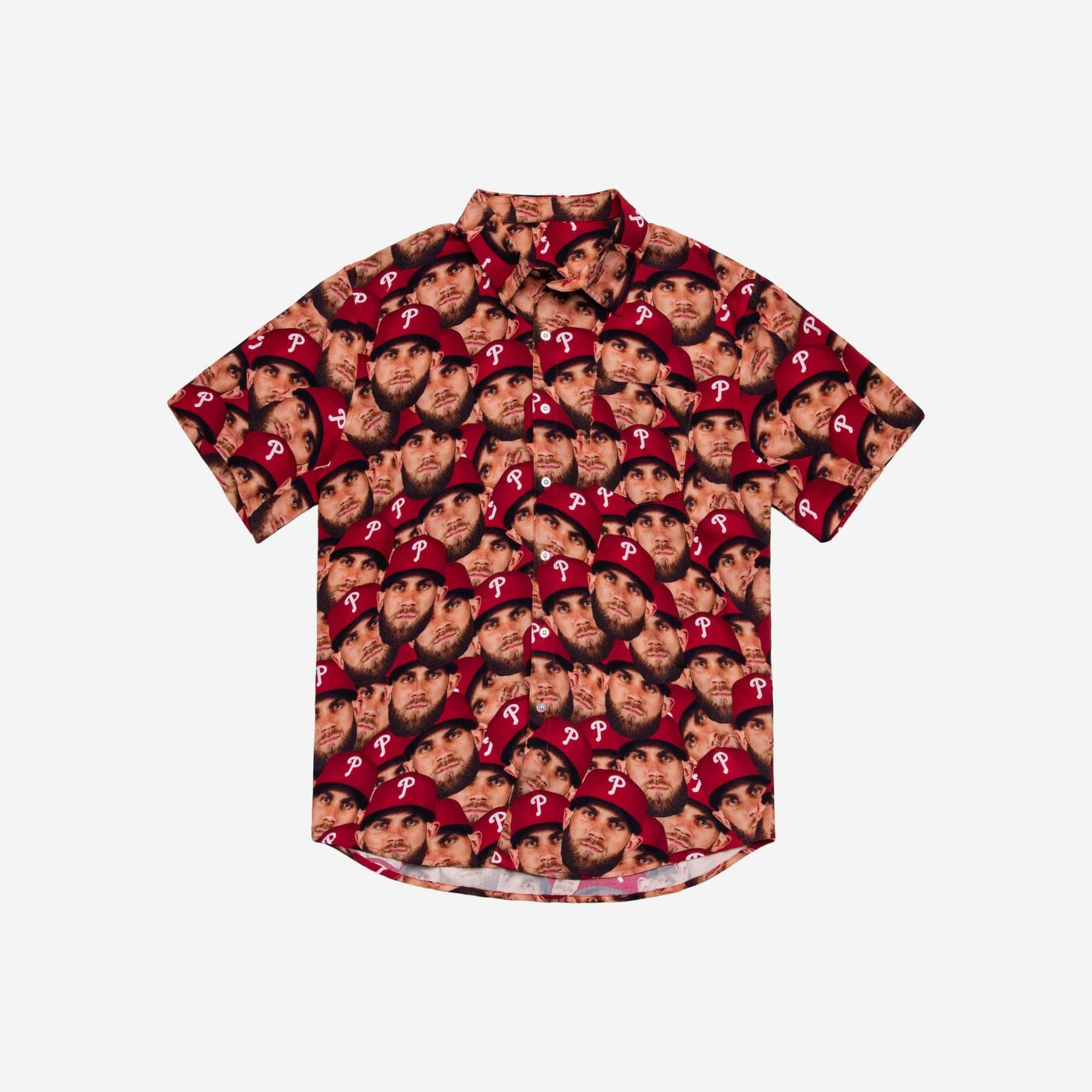 Now this is what a face of the franchise looks like. Well, a whole bunch of faces, if we're being literal. With this Bryce Harper Philadelphia Phillies Men's Button Up Shirt, you can rep your favorite player as you cheer him on to sweet, sweet victory.