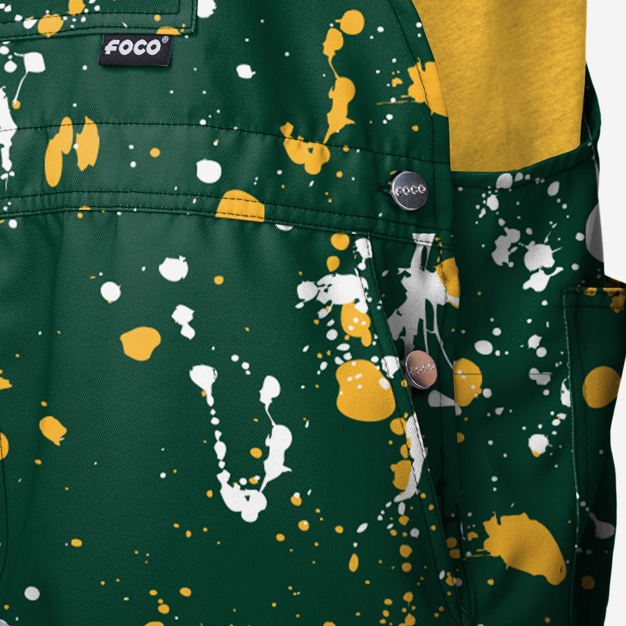 Green Bay Packers Mens Paint Splatter Bib Shortalls FOCO - FOCO.com