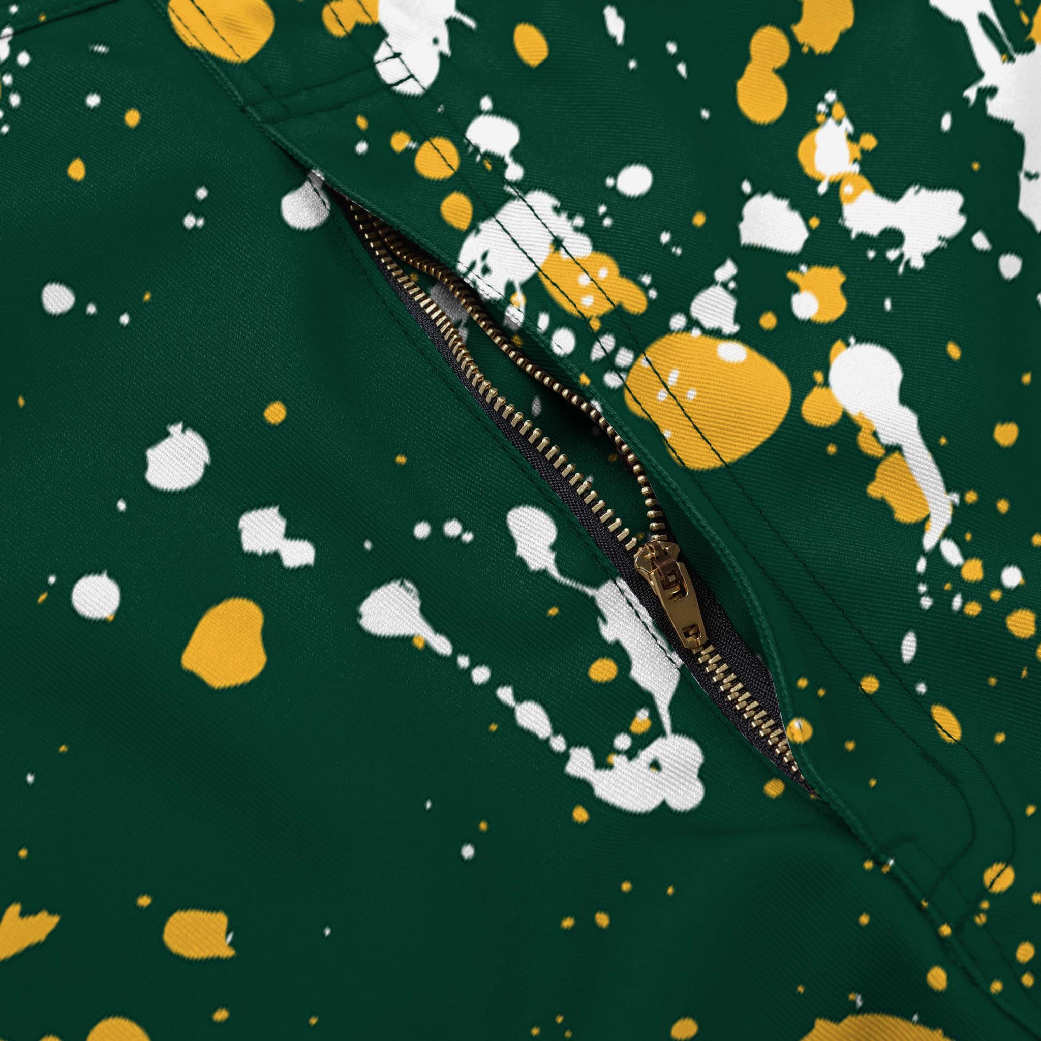 Show your team spirit in these stylish and comfortable Green Bay Packers Men's Paint Splatter Bib Shortalls. With their all-over team-colored design and bold team logo display, these shortalls are the perfect way to show your support for the Green Bay Packers while reminding everyone that your fandom is a masterpiece that even history’s greatest artists would bask in the glory of.