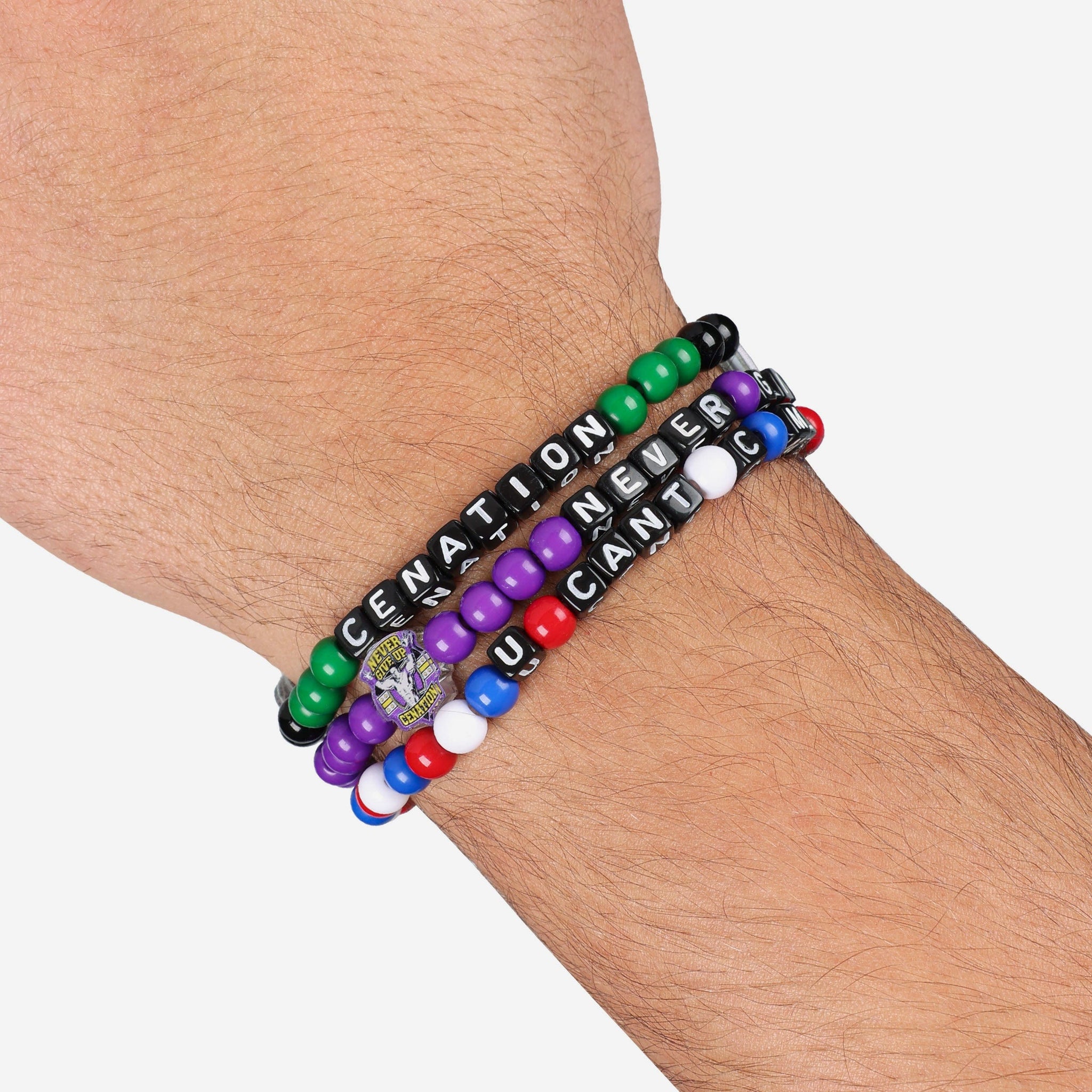 • Thematic words displayed: Letter cubes are organized on a friendship bracelet string to display team-specific words, messages, and player names that will make sure these John Cena player friendship bracelets always have your team spirit front and center.