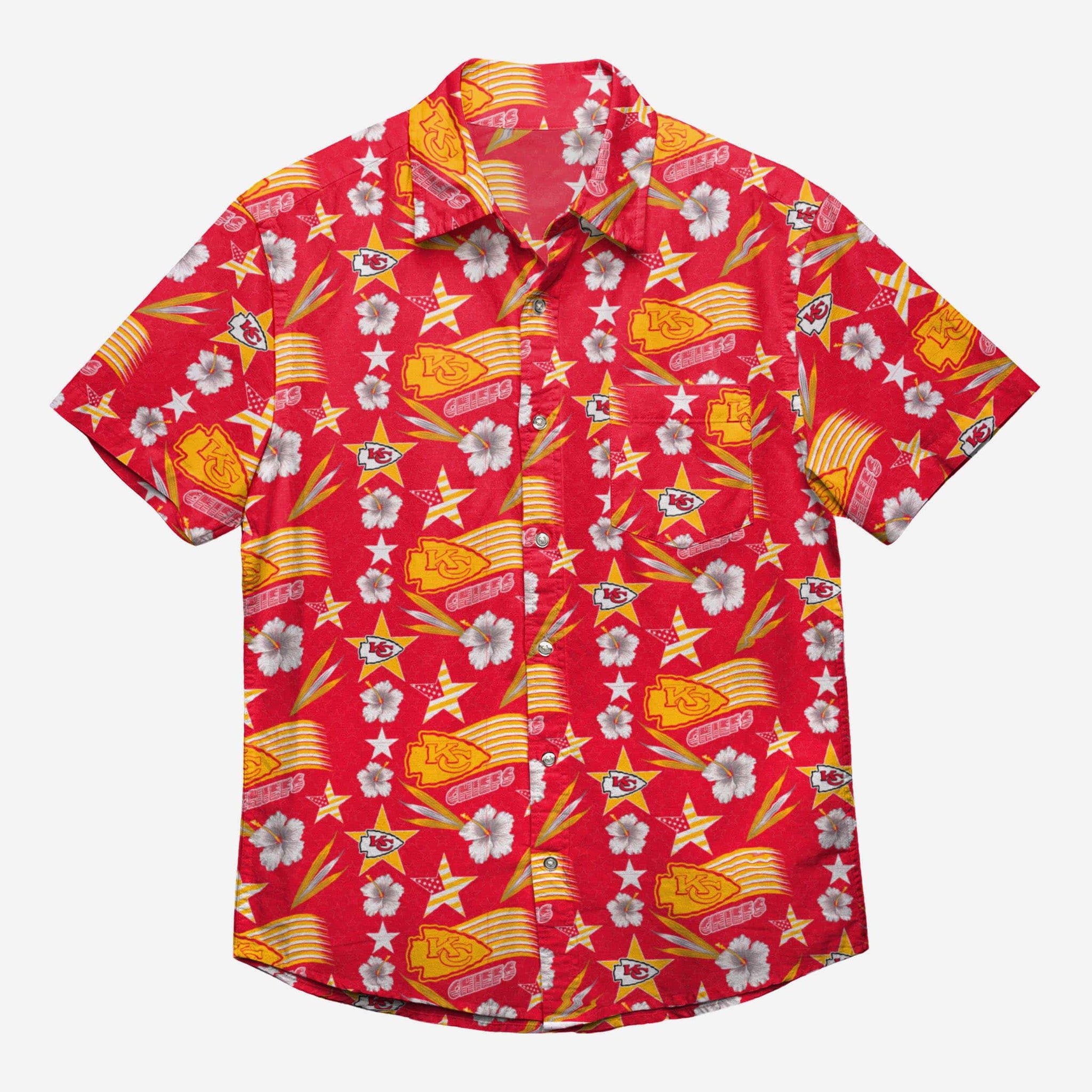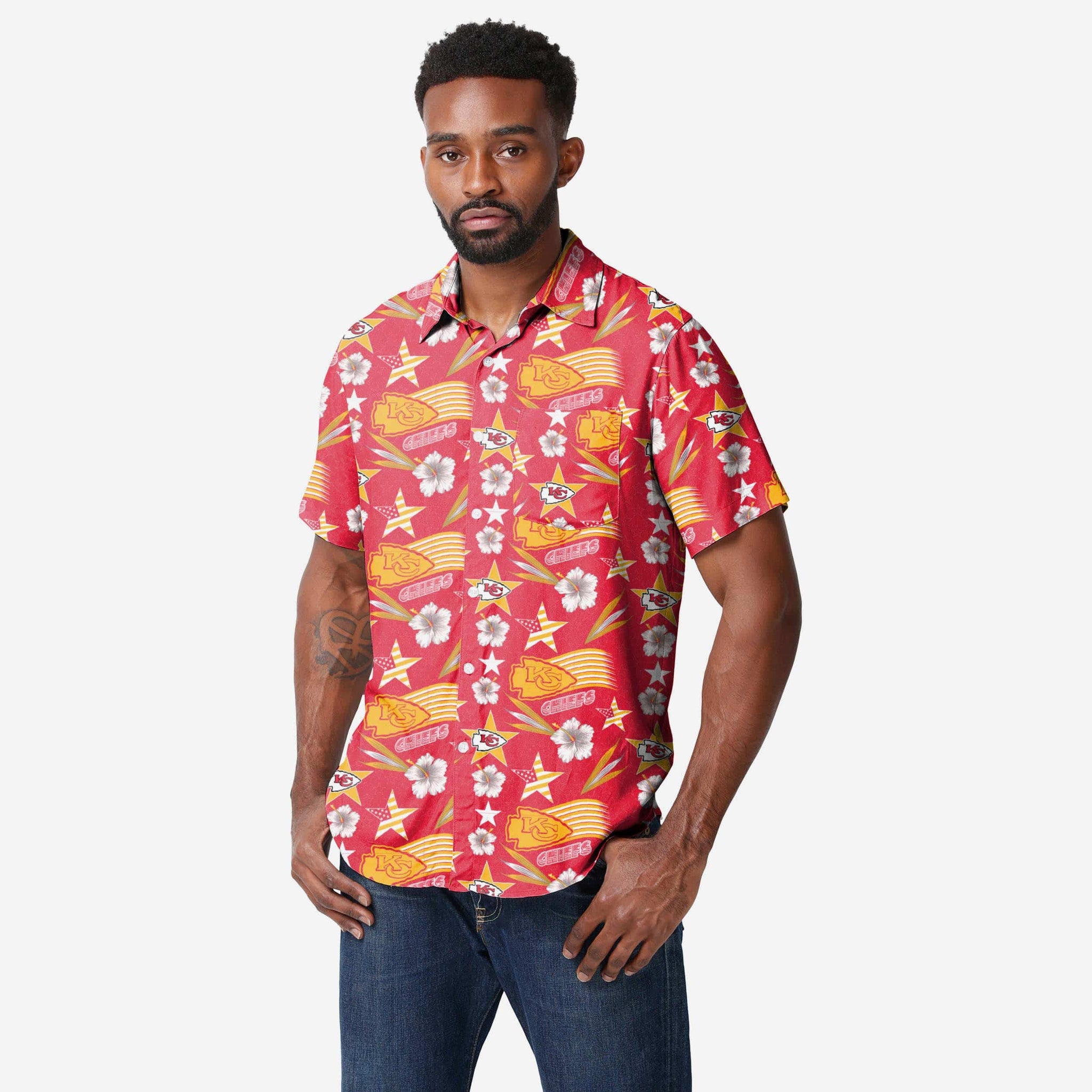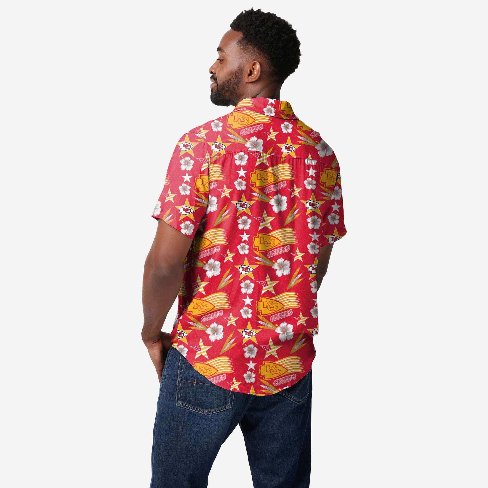 Stars + stripes + team spirit + style = The Kansas City Chiefs Americana Button Up Shirt. Dress to impress, all summer long!