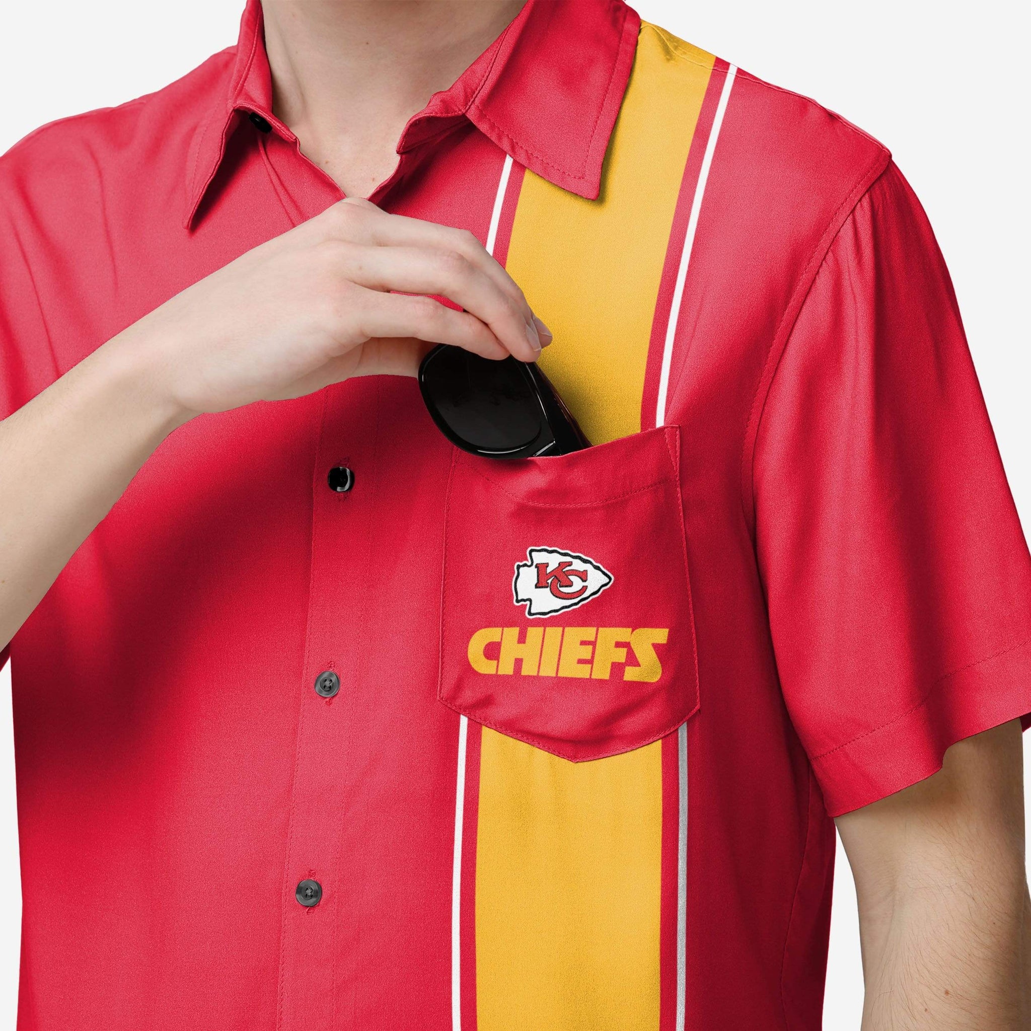Everyone knows bowling shoes are ugly. Luckily, this Kansas City Chiefs Bowling Stripe Button Up Shirt has enough awesome style to make up for them. Turn heads at the game, the lanes, or wherever fandom takes you!