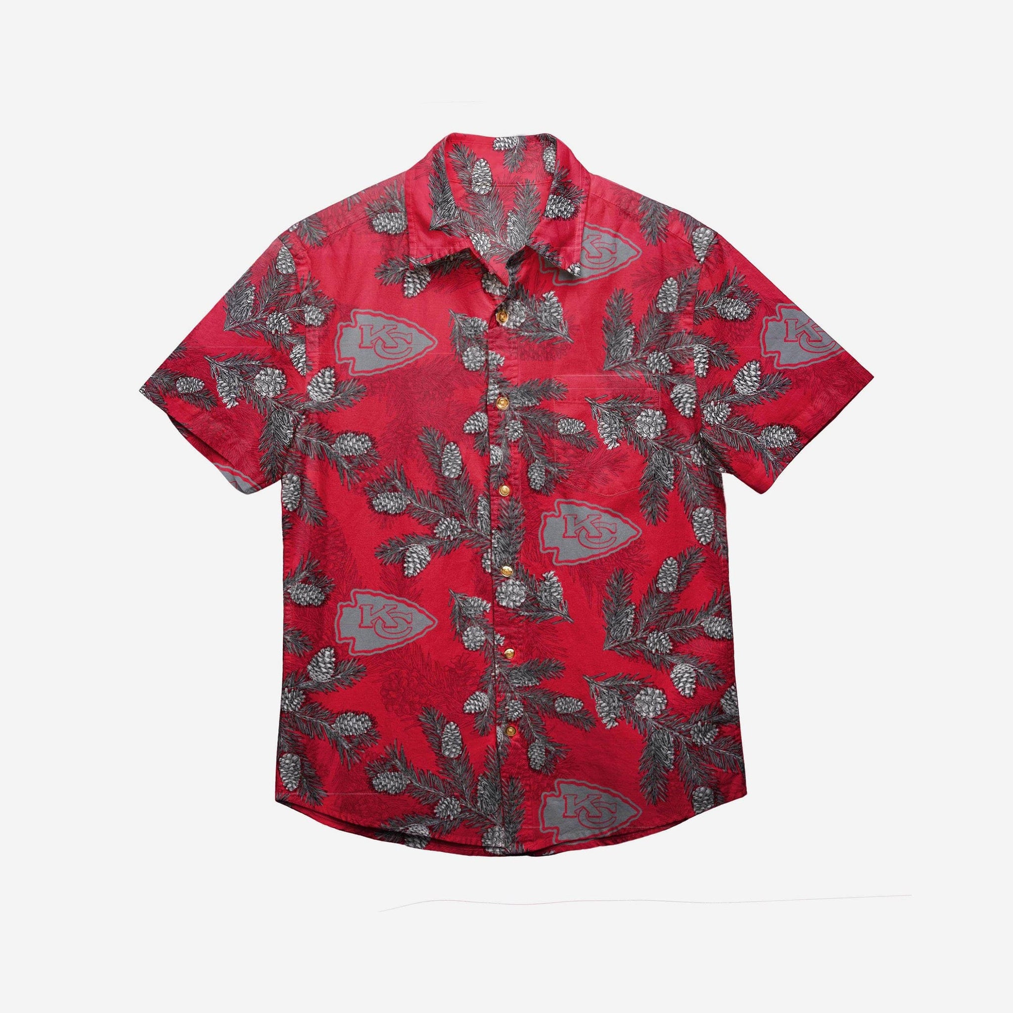 Get ready to button up and party down this winter. Introducing the Kansas City Chiefs Men's Pinecone Button Up Shirt. Wearing it to your holiday party is as satisfying as a freshly brewed hot chocolate. With the little mini marshmallows floating on top.