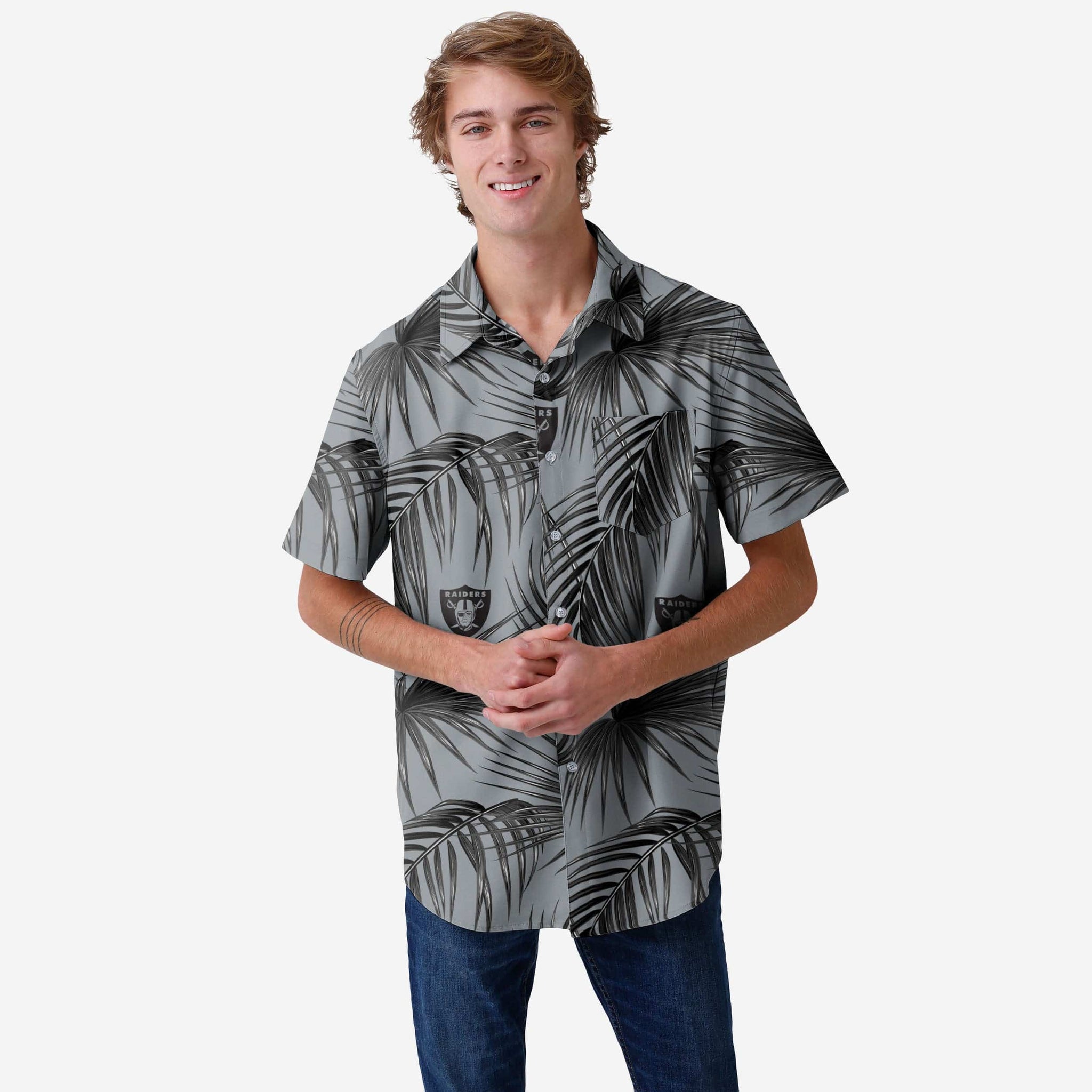 Say "Aloha" to your must-have fan fashion style. With this Las Vegas Raiders Hawaiian Button-Up Shirt, you'll be the freshest fan at any tailgate, pig roast, family reunion, or office holiday party.