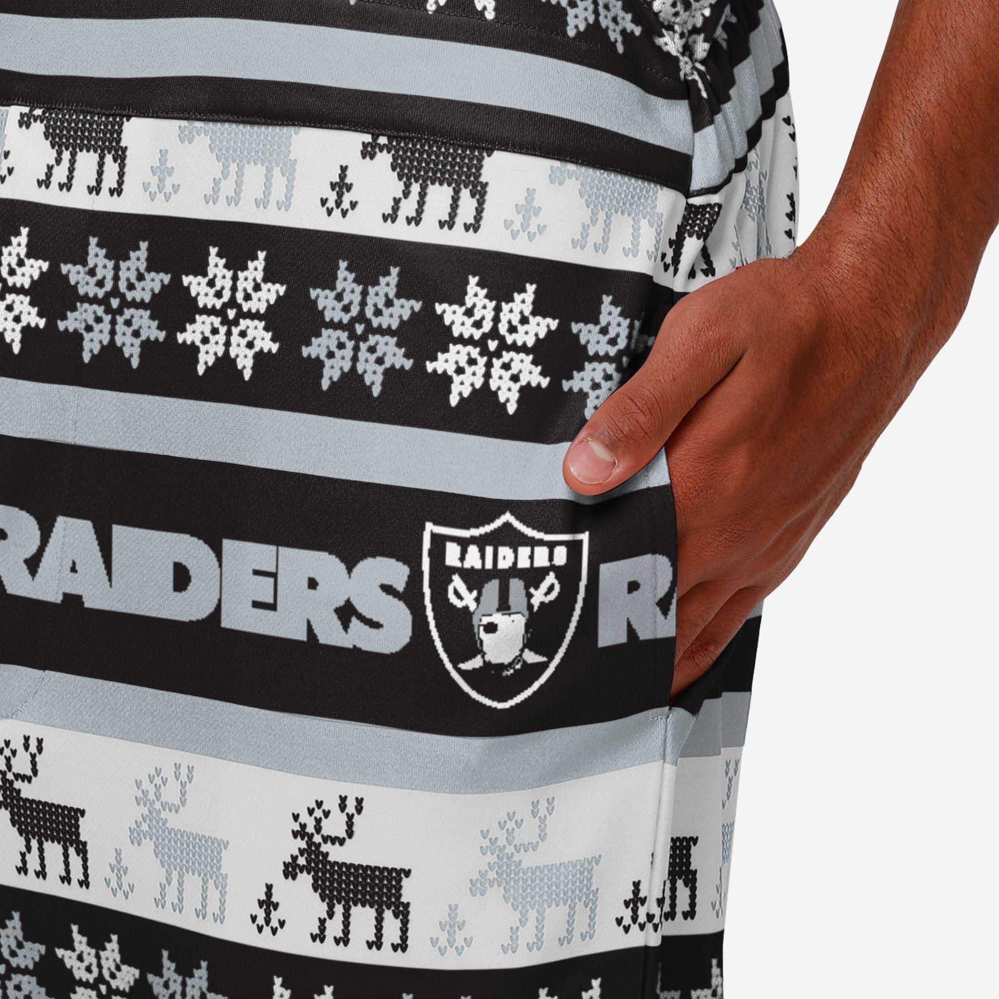 Show your team spirit in these stylish and comfortable Las Vegas Raiders Men's Ugly Home Gating Bib Overalls. With their all-over team-colored design and bold team logo display, these overalls are the perfect way to show your support for the Las Vegas Raiders while showing off some beautiful style akin to your favorite ugly sweater that's perfect for the holidays, but will help you stand out year-round.