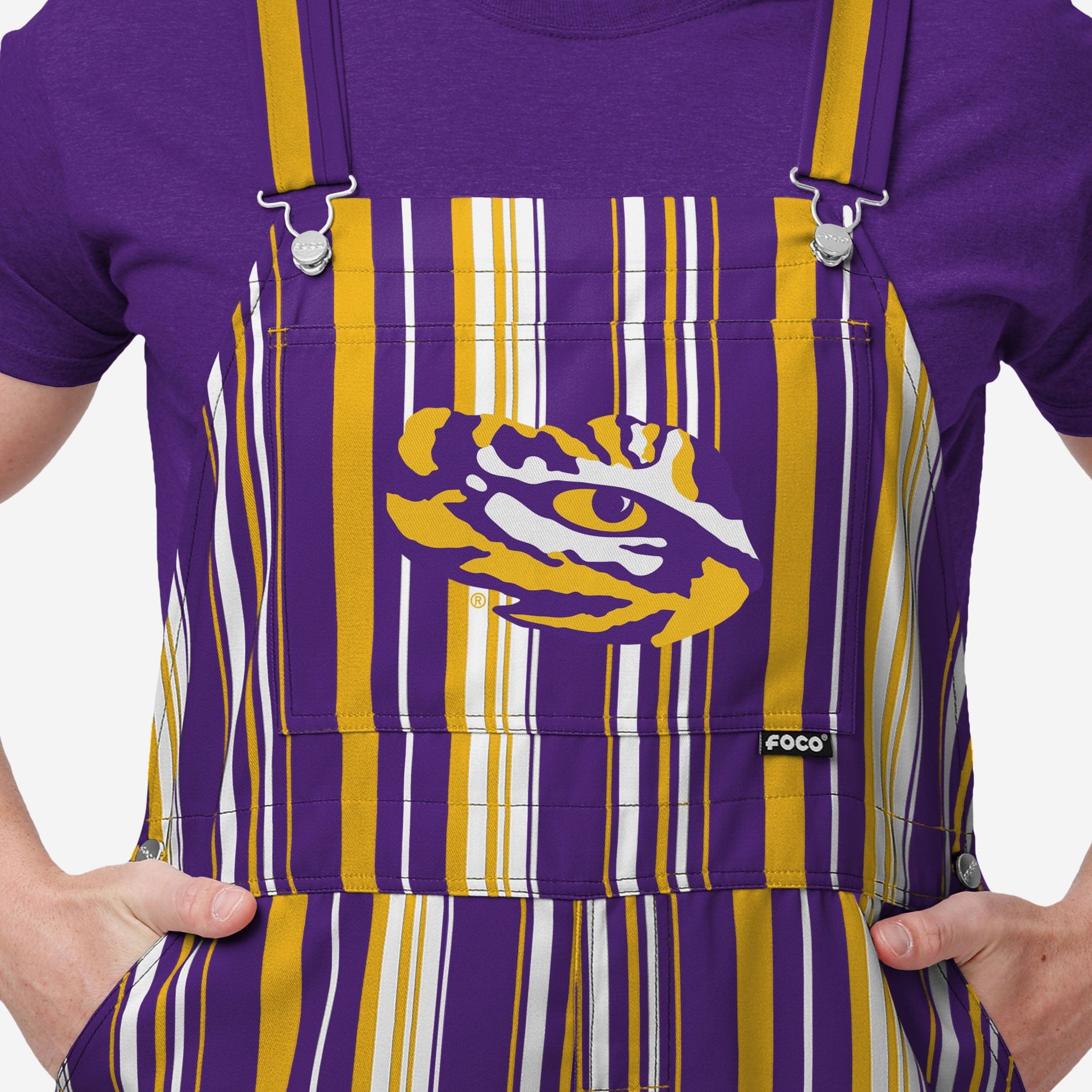 LSU Tigers Mens Hyper Stripe Bib Overalls FOCO - FOCO.com
