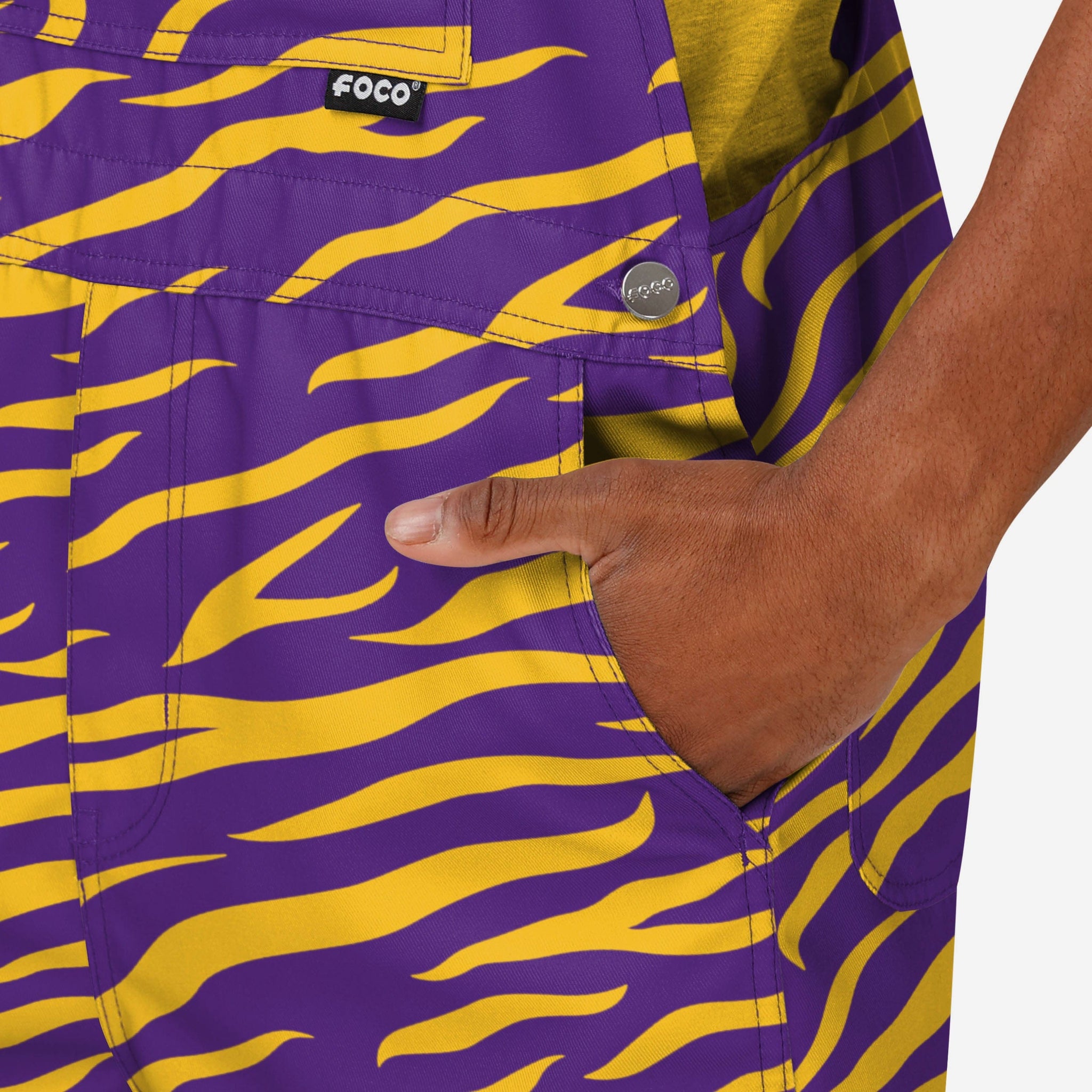 - All-over team-colored design: These shortalls are covered in the official LSU Tigers colors, so you can show your team spirit with pride.