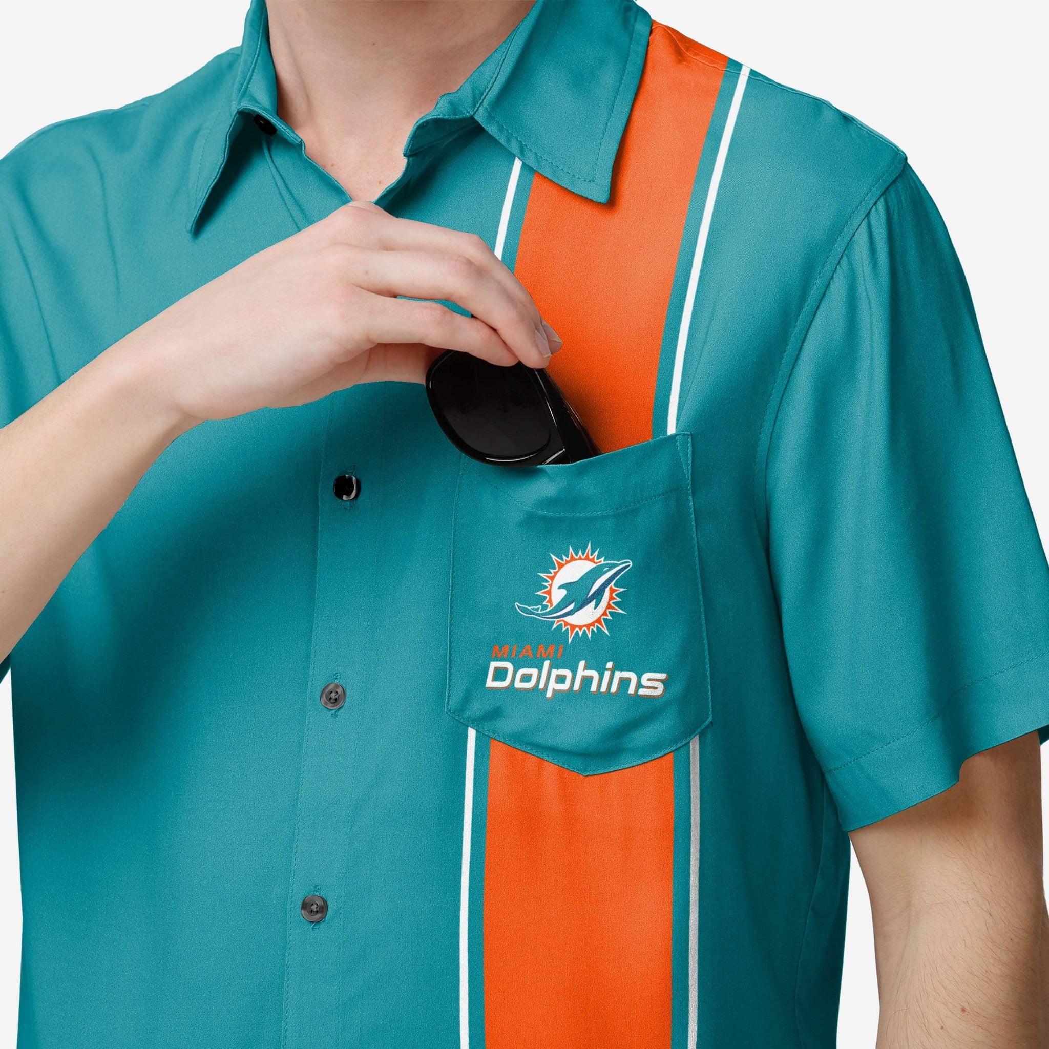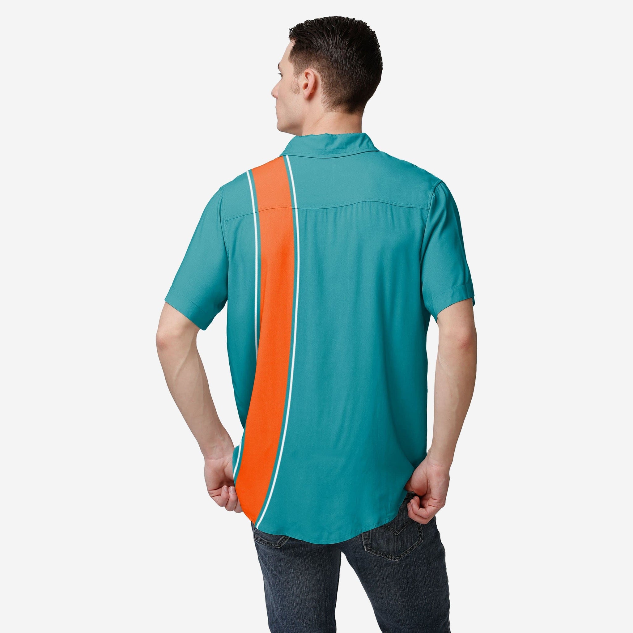 Everyone knows bowling shoes are ugly. Luckily, this Miami Dolphins Bowling Stripe Button Up Shirt has enough awesome style to make up for them. Turn heads at the game, the lanes, or wherever fandom takes you!