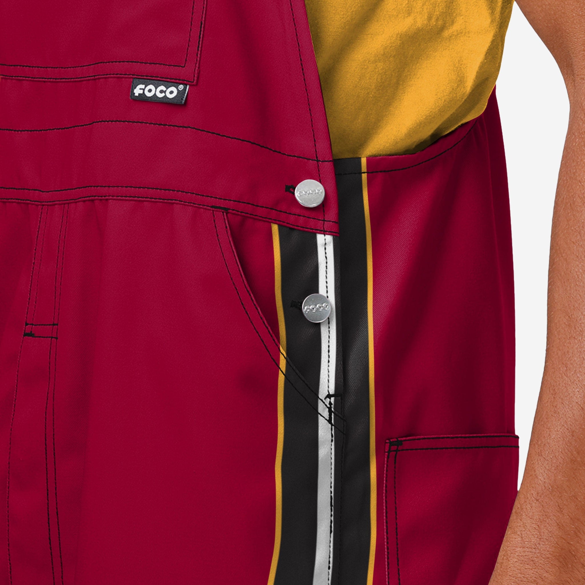 • Bold team logo displays: The front of the overalls and the front of the left leg feature a large team logo, so everyone will know who you're rooting for.