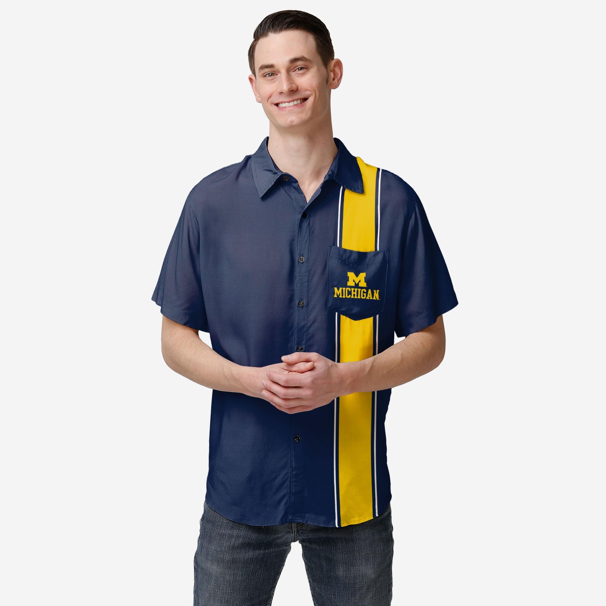 Michigan Wolverines Bowling Stripe Button Up Shirt FOCO S - FOCO.com