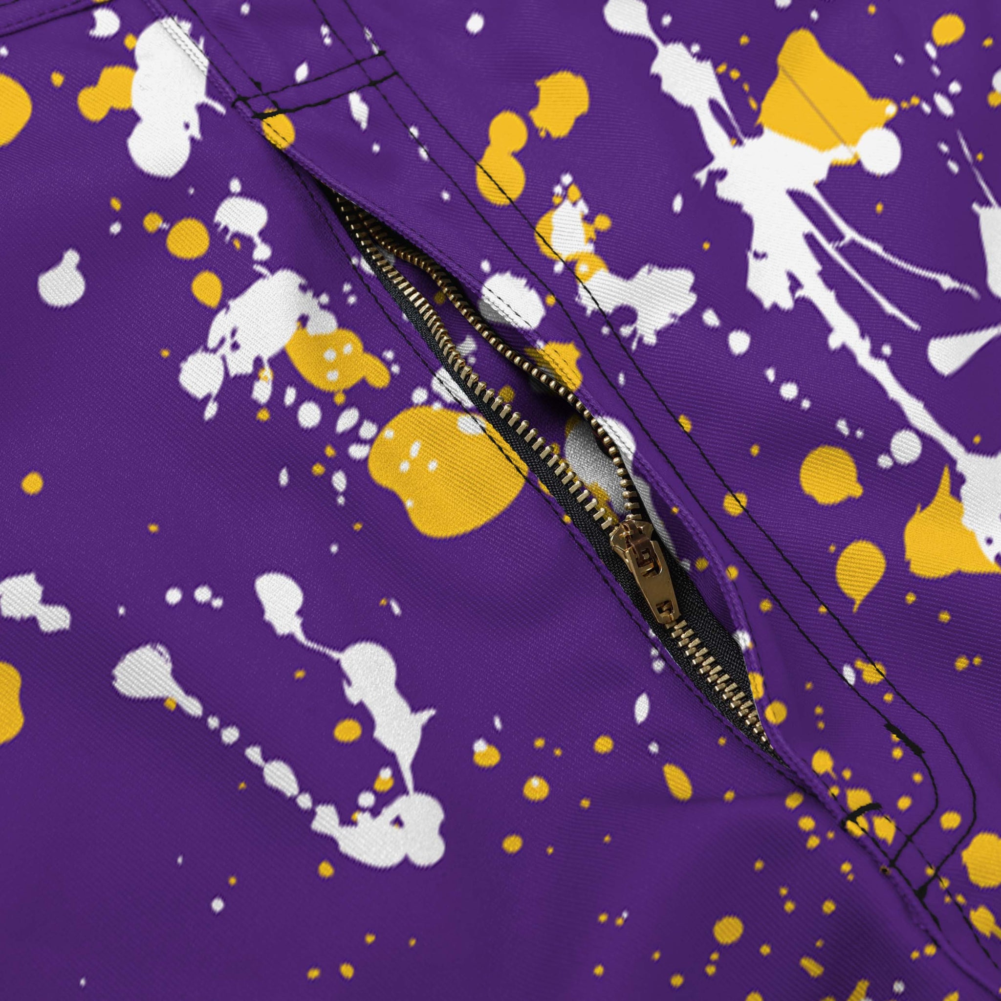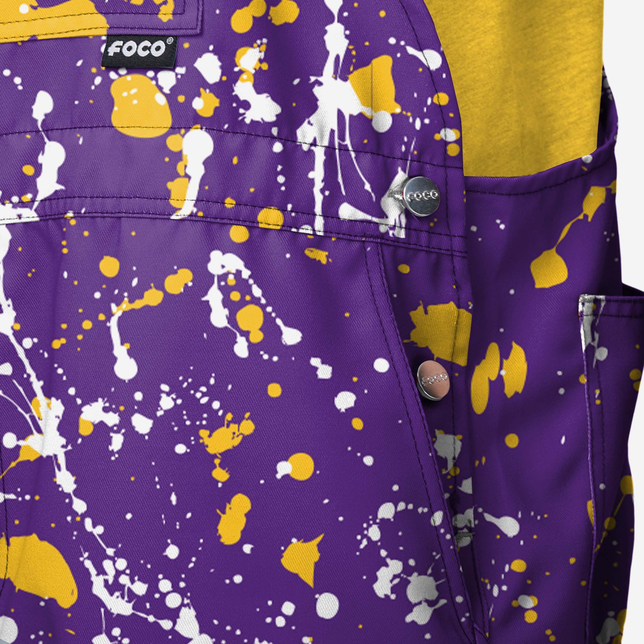 Show your team spirit in these stylish and comfortable Minnesota Vikings Men's Paint Splatter Bib Shortalls. With their all-over team-colored design and bold team logo display, these shortalls are the perfect way to show your support for the Minnesota Vikings while reminding everyone that your fandom is a masterpiece that even history’s greatest artists would bask in the glory of.