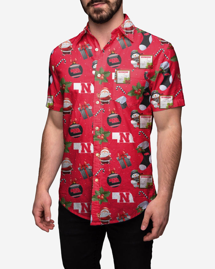 Nebraska Cornhuskers Christmas Explosion Button Up Shirt FOCO S - FOCO.com