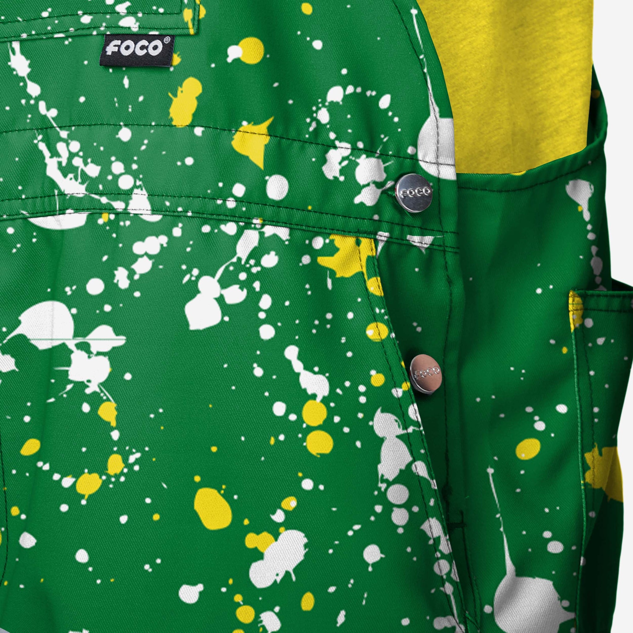 Show your team spirit in these stylish and comfortable Oregon Ducks Men's Paint Splatter Bib Shortalls. With their all-over team-colored design and bold team logo display, these shortalls are the perfect way to show your support for the Oregon Ducks while reminding everyone that your fandom is a masterpiece that even history’s greatest artists would bask in the glory of.