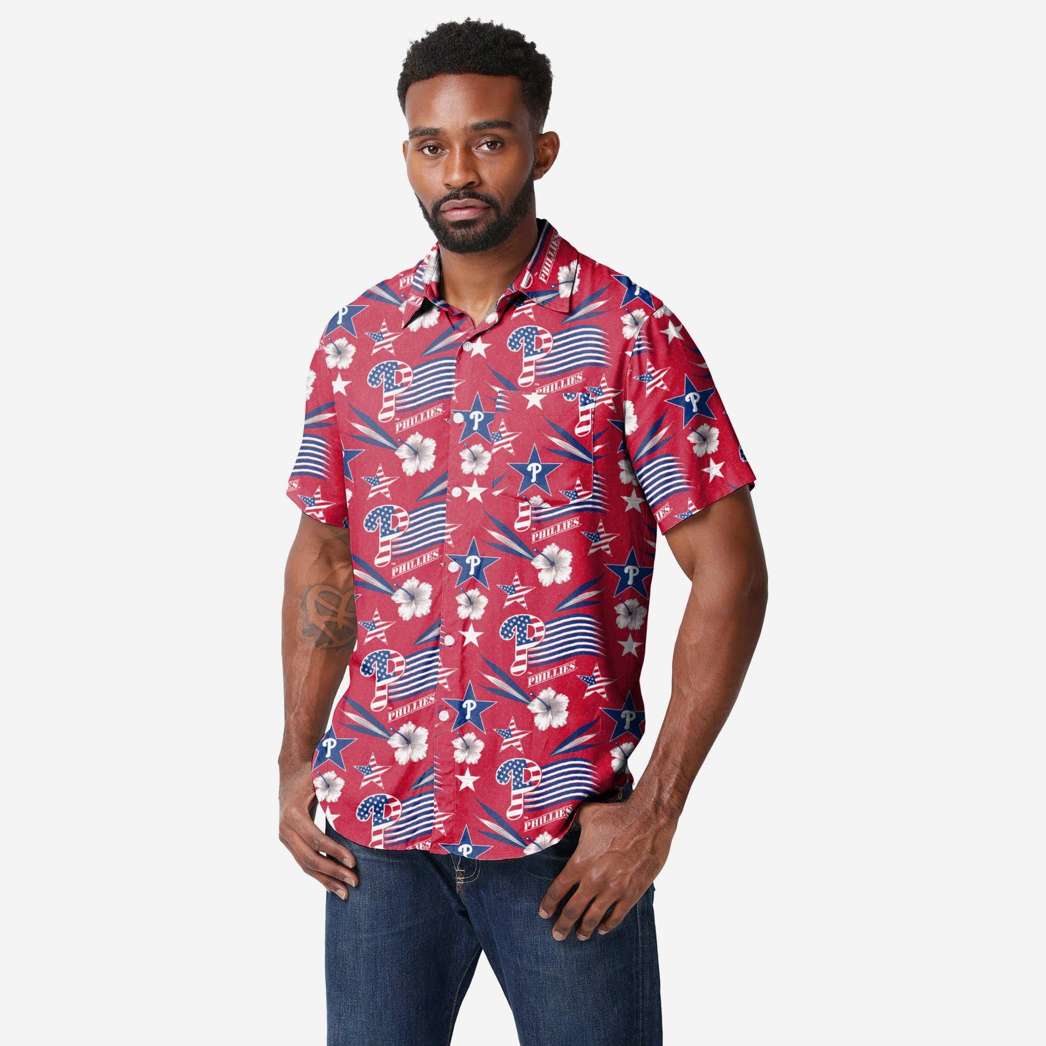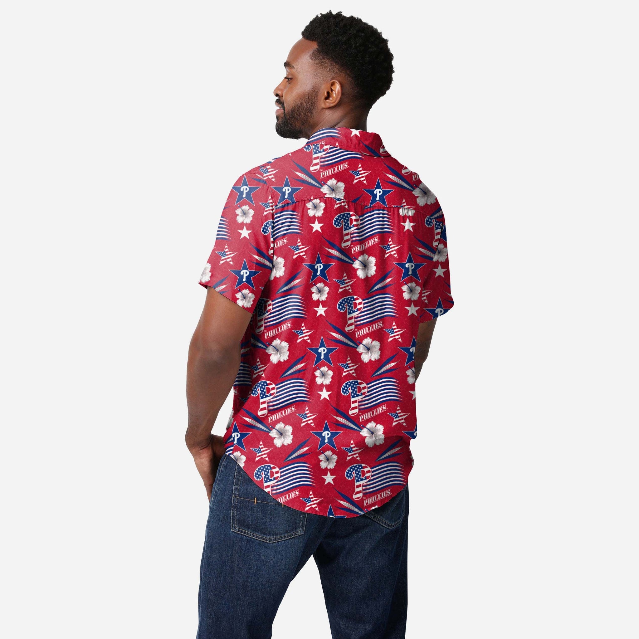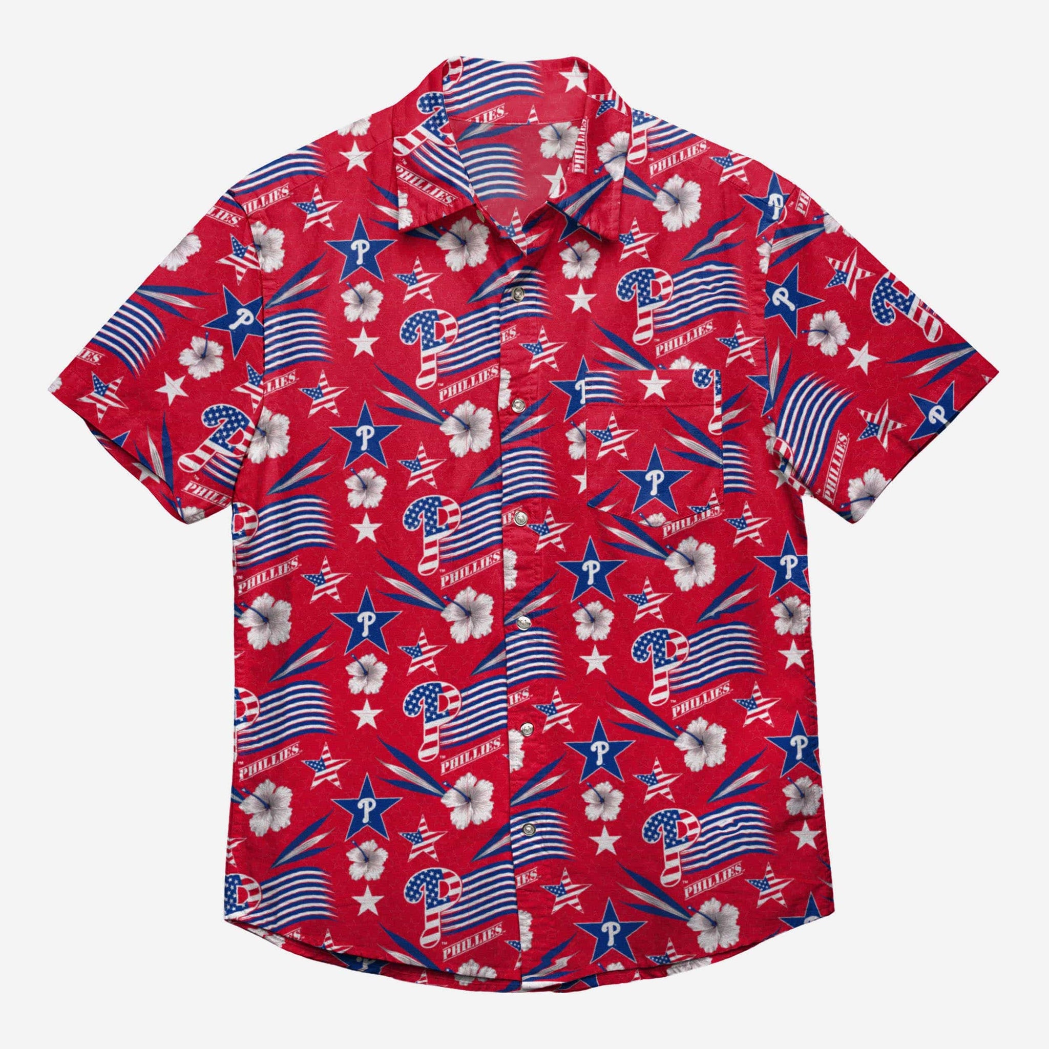 Stars + stripes + team spirit + style = The Philadelphia Phillies Americana Button Up Shirt. Dress to impress, all summer long!