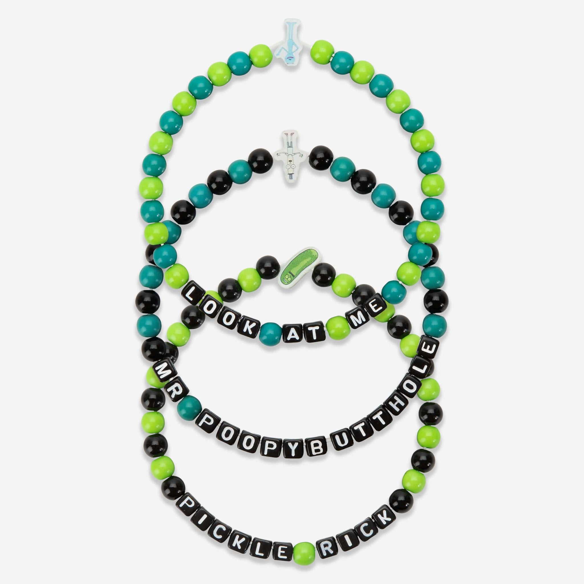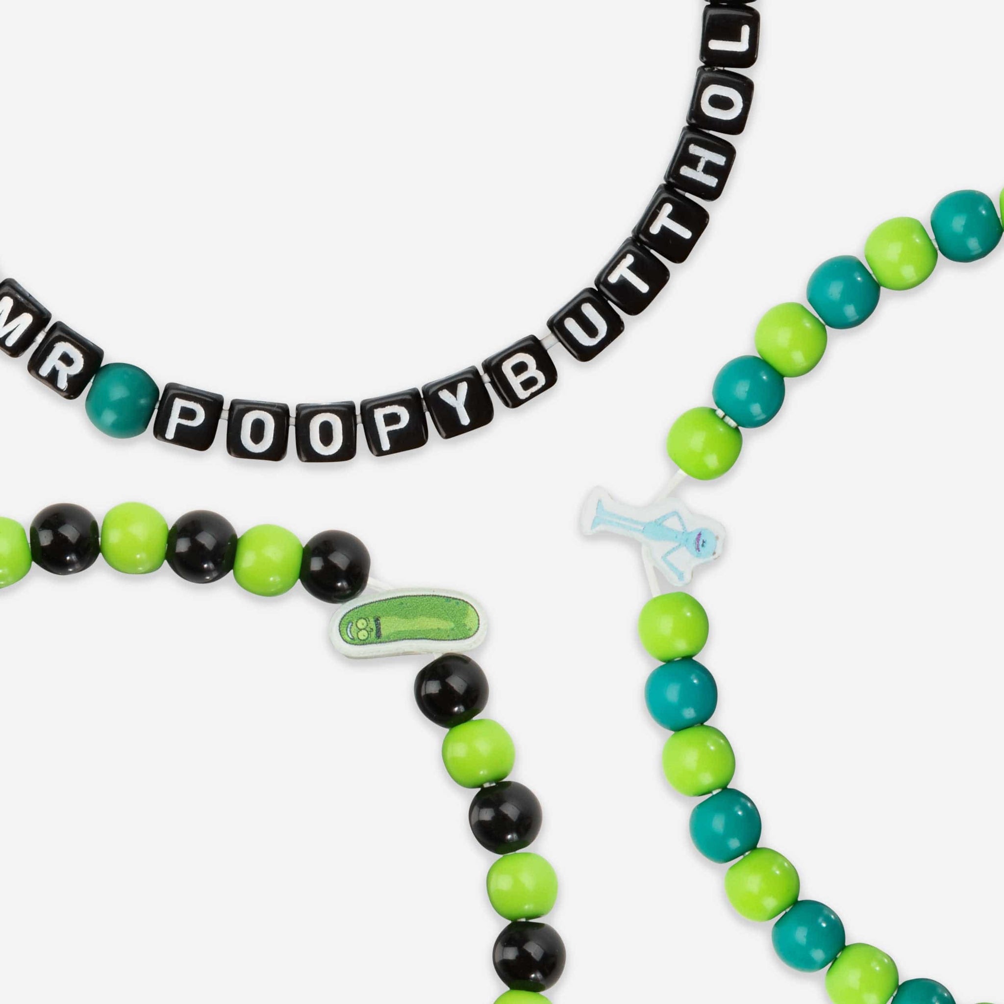Step up your fan fashion sense with this Pickle Rick & Mr. Poopybutthole Rick and Morty 3 Pack Beaded Friendship Bracelet. These matching friendship bracelets have an all-over design and thematic displays, which makes them the perfect way to show your support for Rick and Morty and show off your unique sense of style.