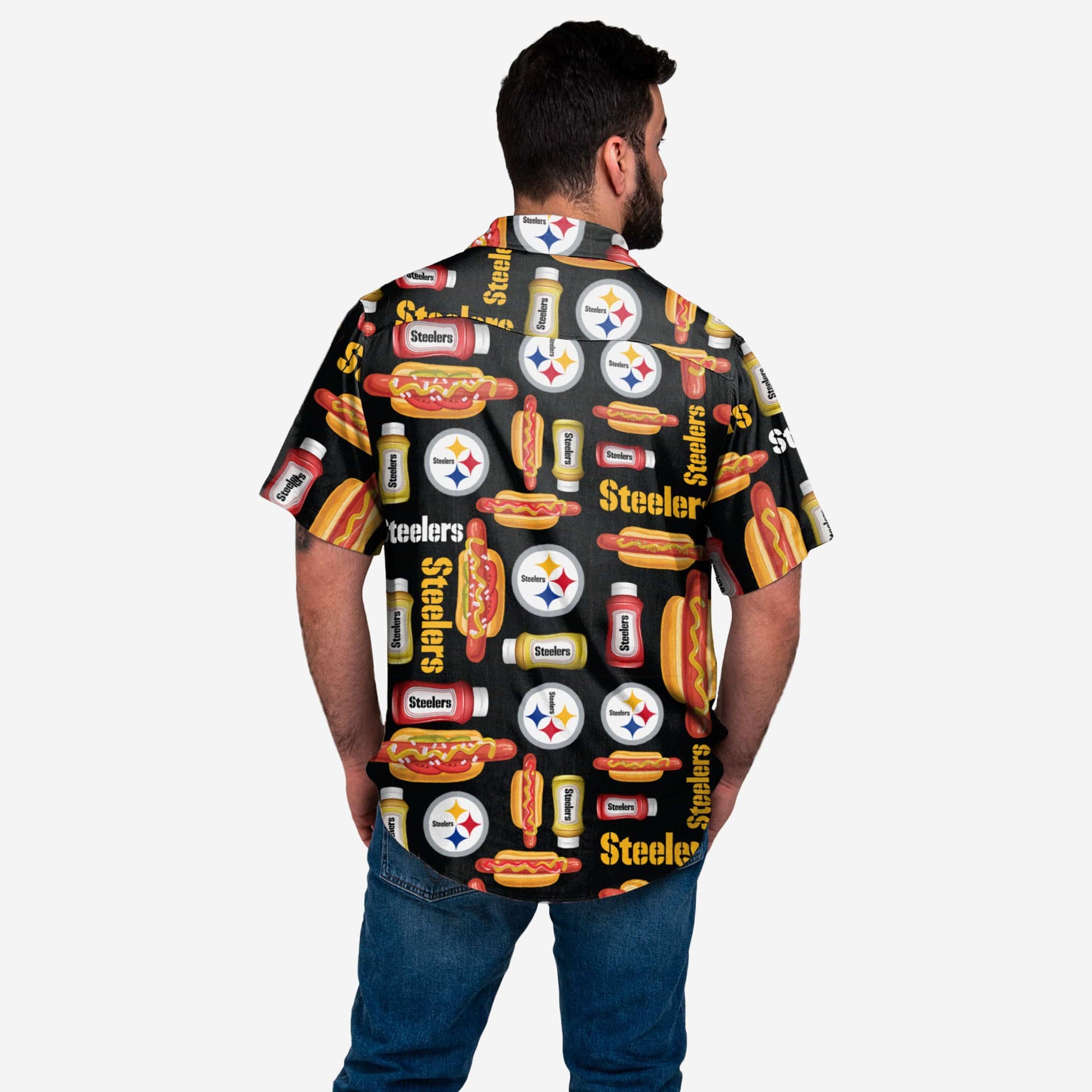Enjoy some sizzlin' style made for the ultimate team fan and grilling aficionado. The fandom on display with this Pittsburgh Steelers Grill Pro Button Up Shirt is as delicious as a freshly grilled hot dog. Mmm. Hot Dogs.