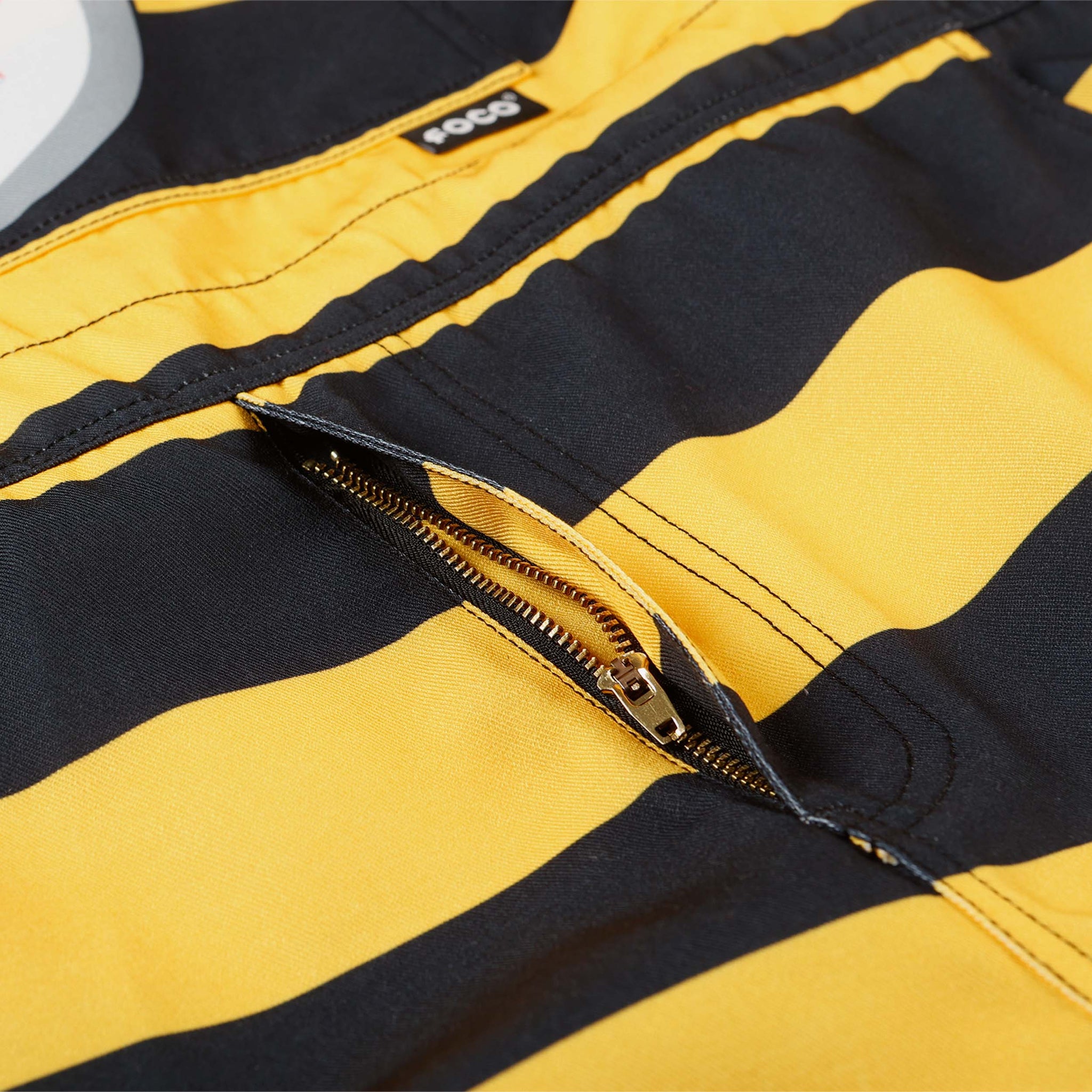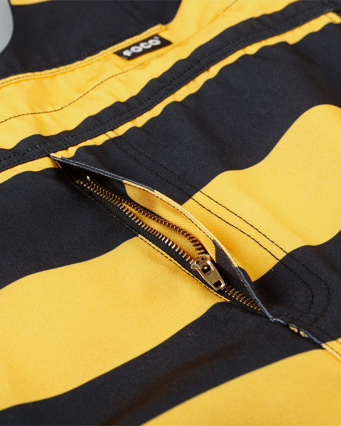 • All-over team-colored design: These shortalls are covered in the official Pittsburgh Steelers colors and patterns, so you can show your team spirit with pride.