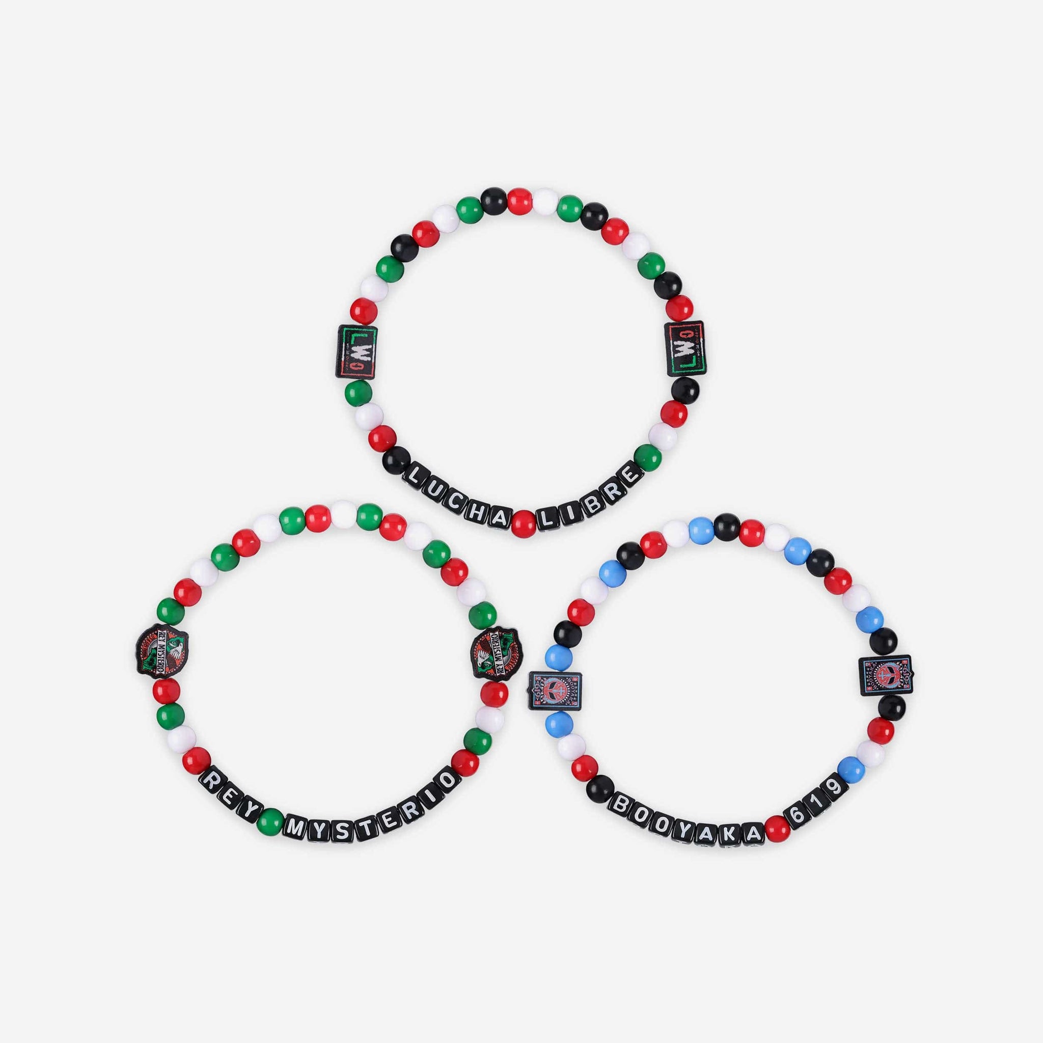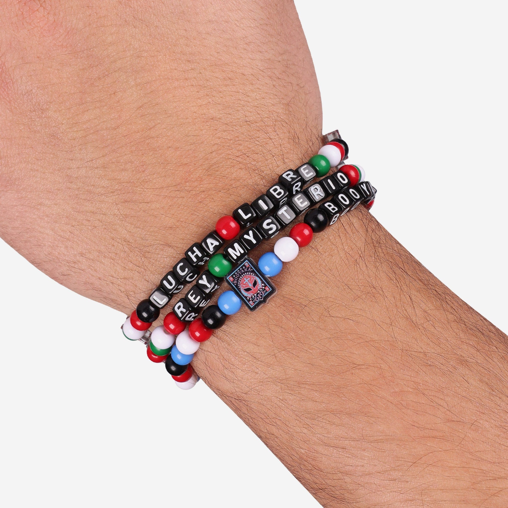 A whole new way to rep your favorite superstar in style is here. Step up your fan fashion sense with this Rey Mysterio WWE 3 Pack Beaded Friendship Bracelet. These matching friendship bracelets have an all-over team-colored design and team logo displays, which makes them the perfect way to show your support for Rey Mysterio from the opening bell to pinfall, and every day in between.