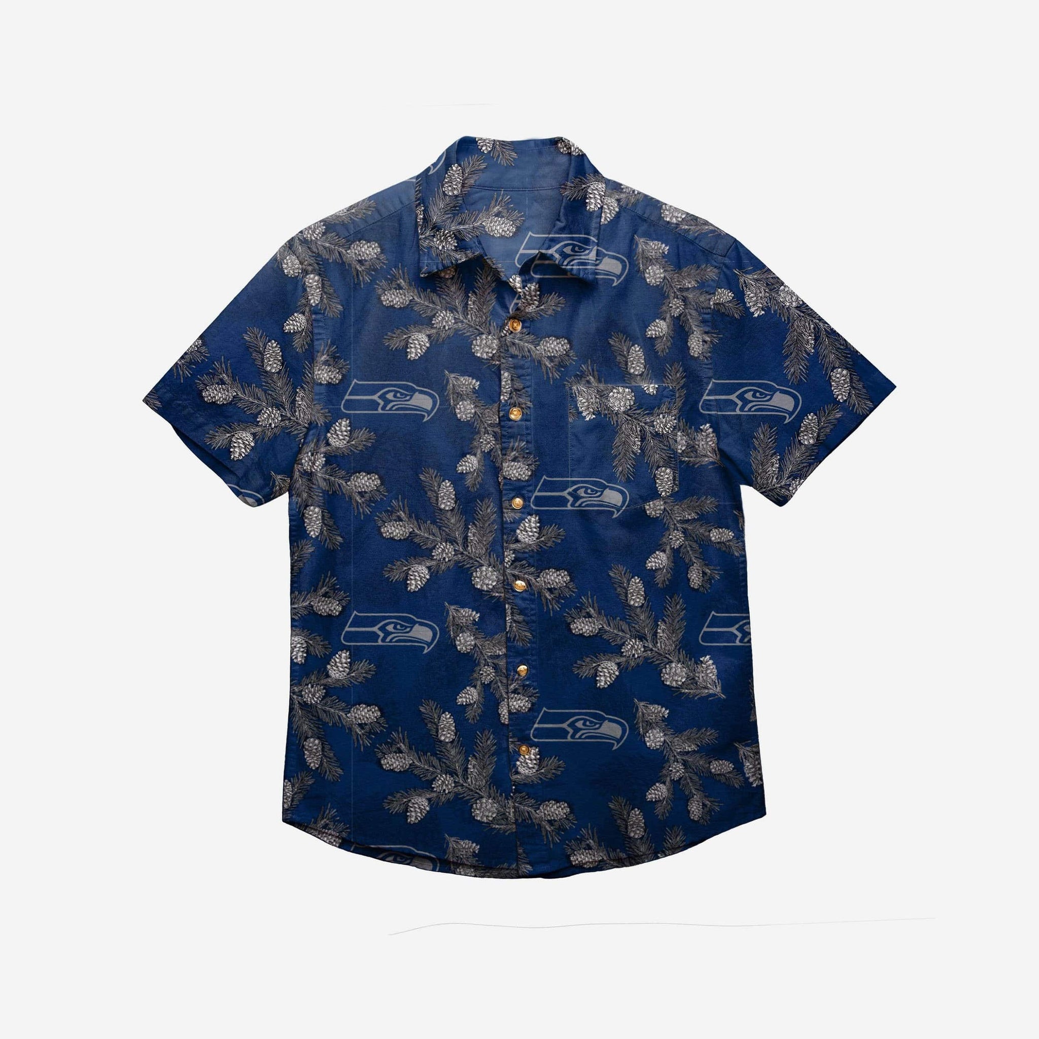 Get ready to button up and party down this winter. Introducing the Seattle Seahawks Men's Pinecone Button Up Shirt. Wearing it to your holiday party is as satisfying as a freshly brewed hot chocolate. With the little mini marshmallows floating on top.