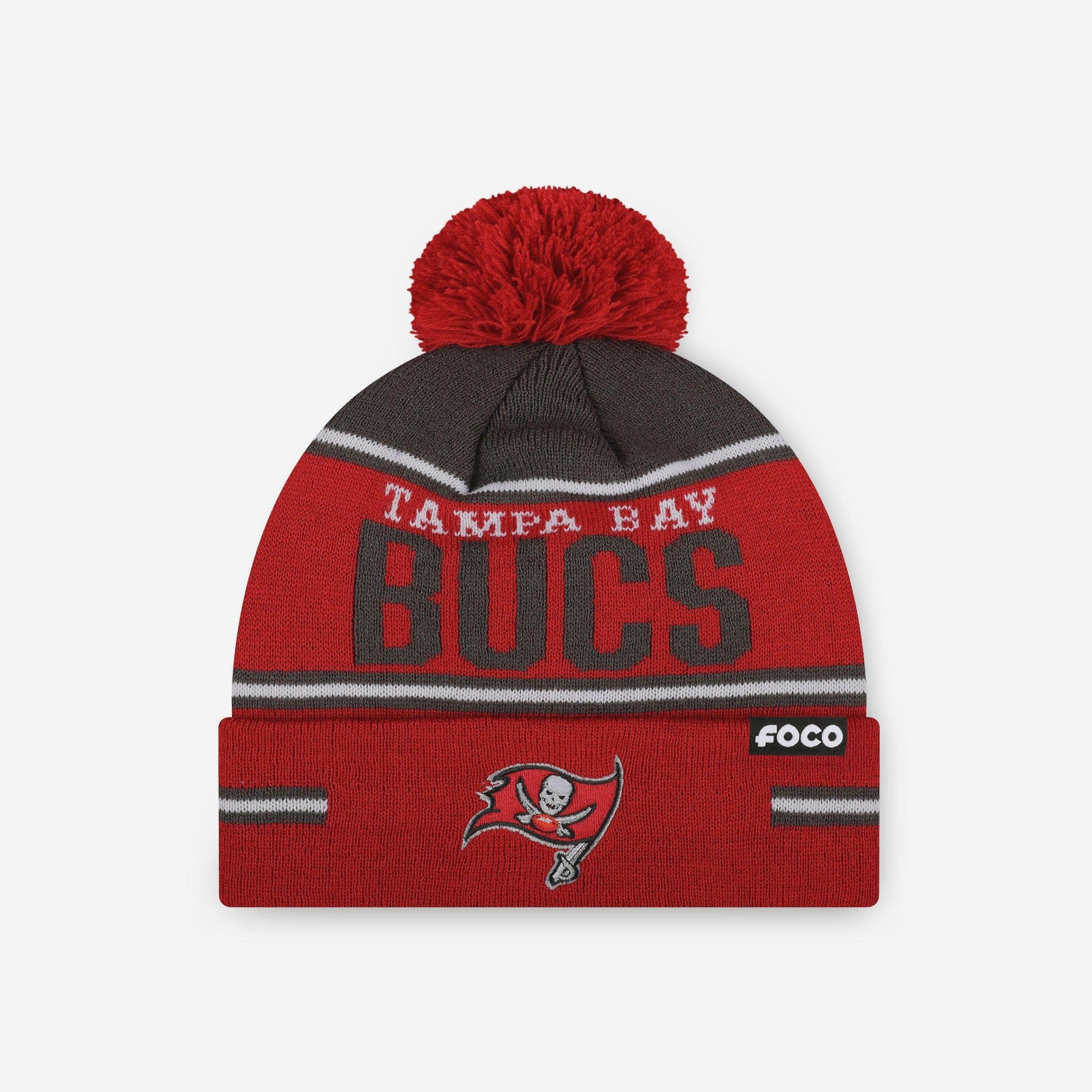 Tampa Bay Buccaneers Big Wordmark Stripe Pom Beanie FOCO - FOCO.com