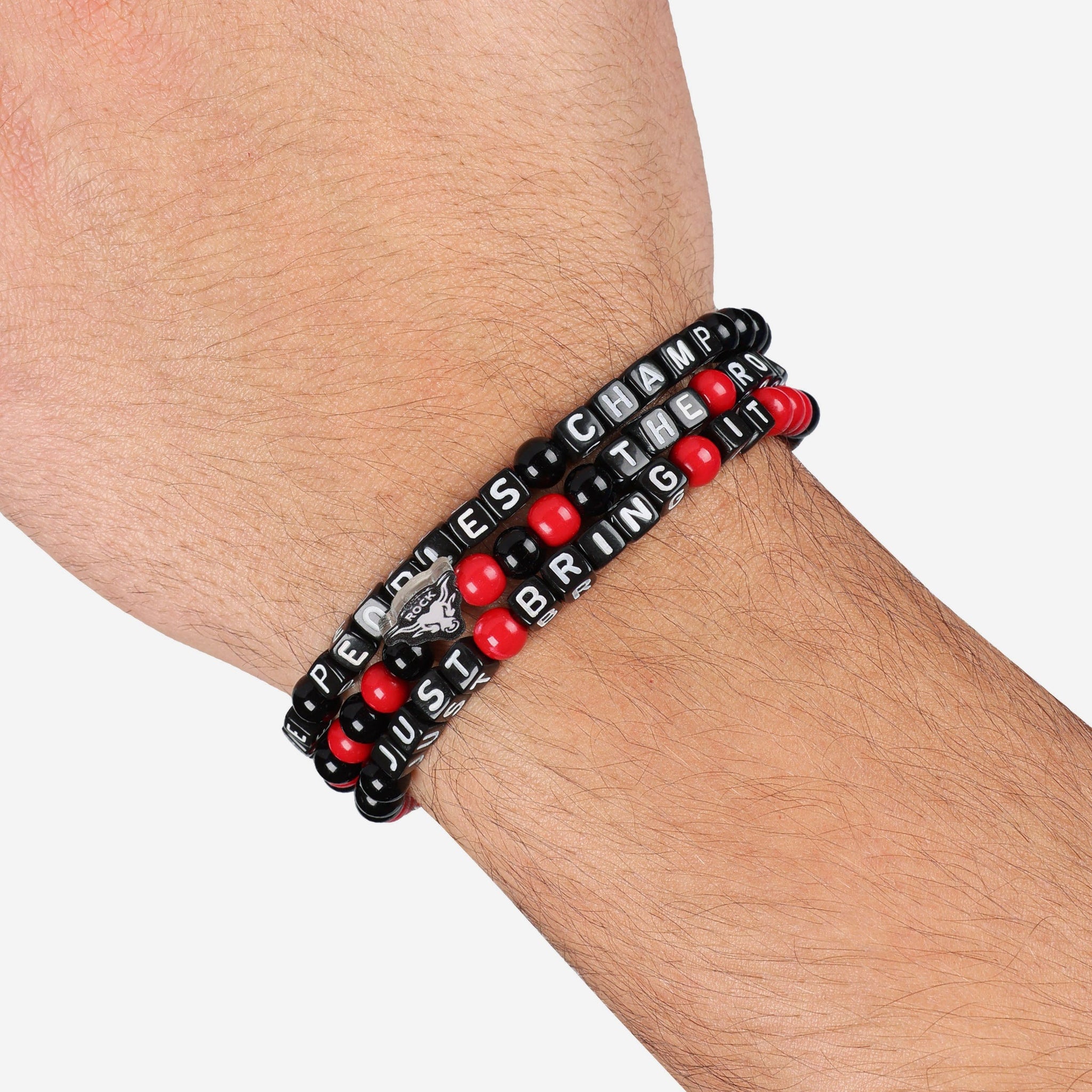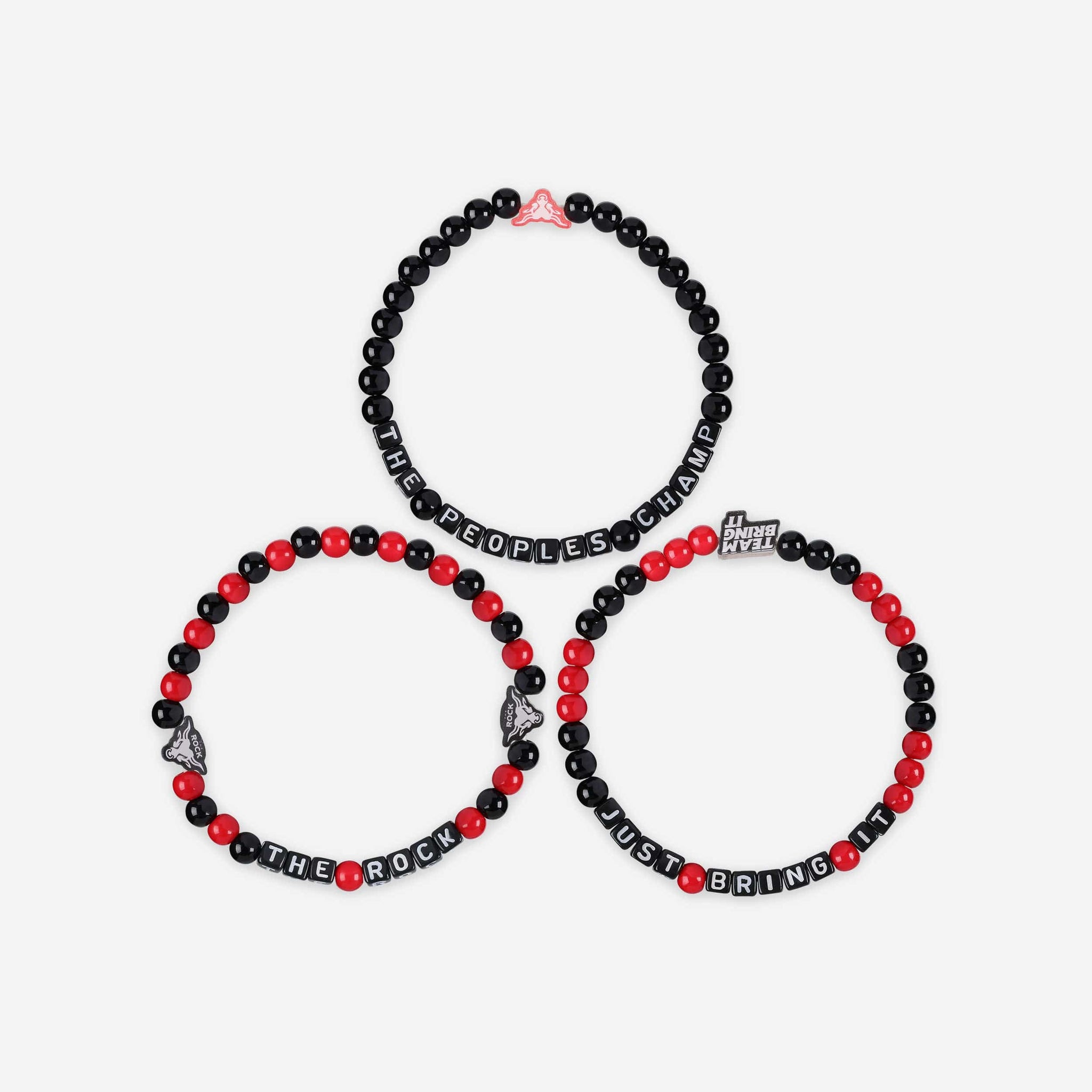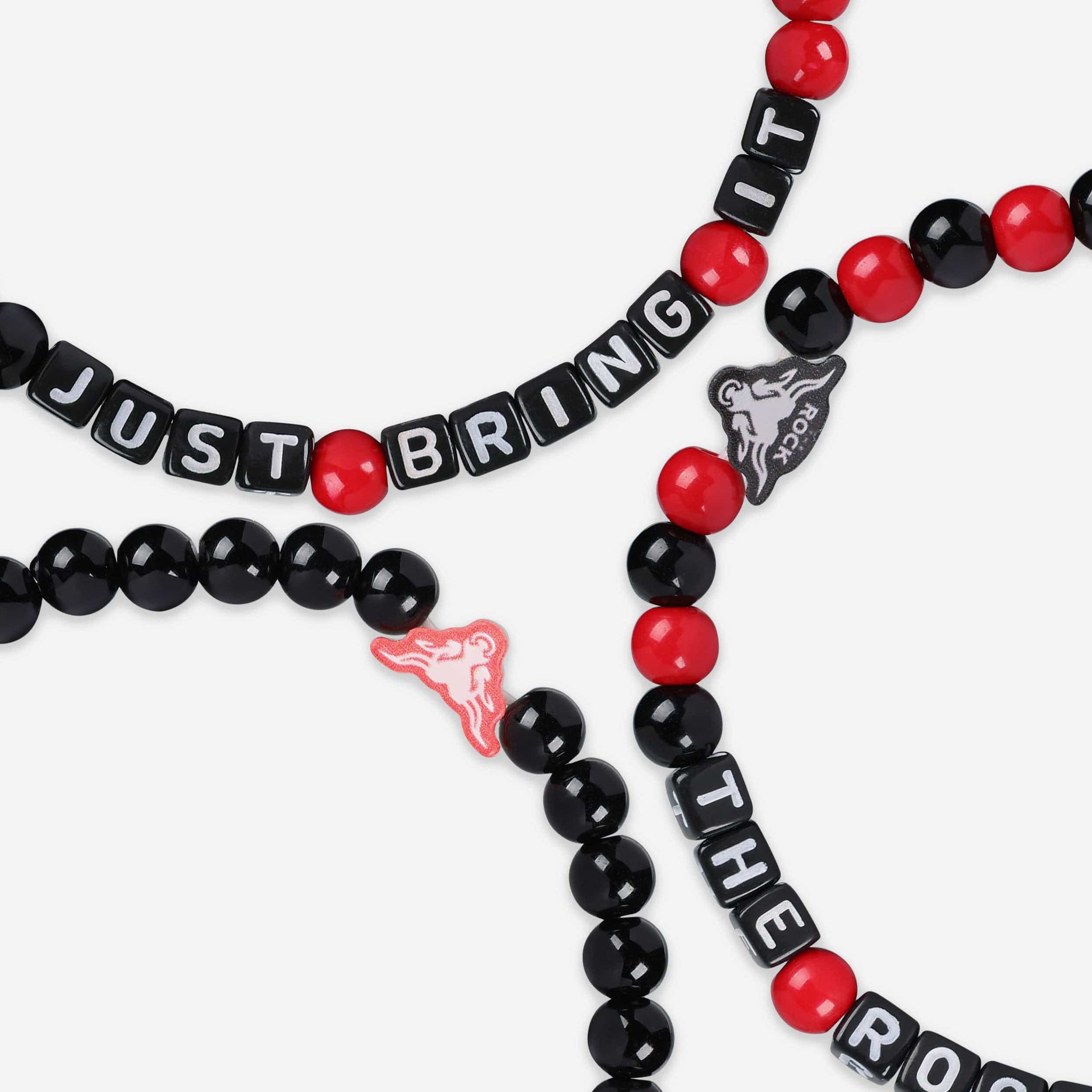 A whole new way to rep your favorite superstar in style is here. Step up your fan fashion sense with this The Rock WWE 3 Pack Beaded Friendship Bracelet. These matching friendship bracelets have an all-over team-colored design and team logo displays, which makes them the perfect way to show your support for The People's Champ from the opening bell to pinfall, and every day in between.