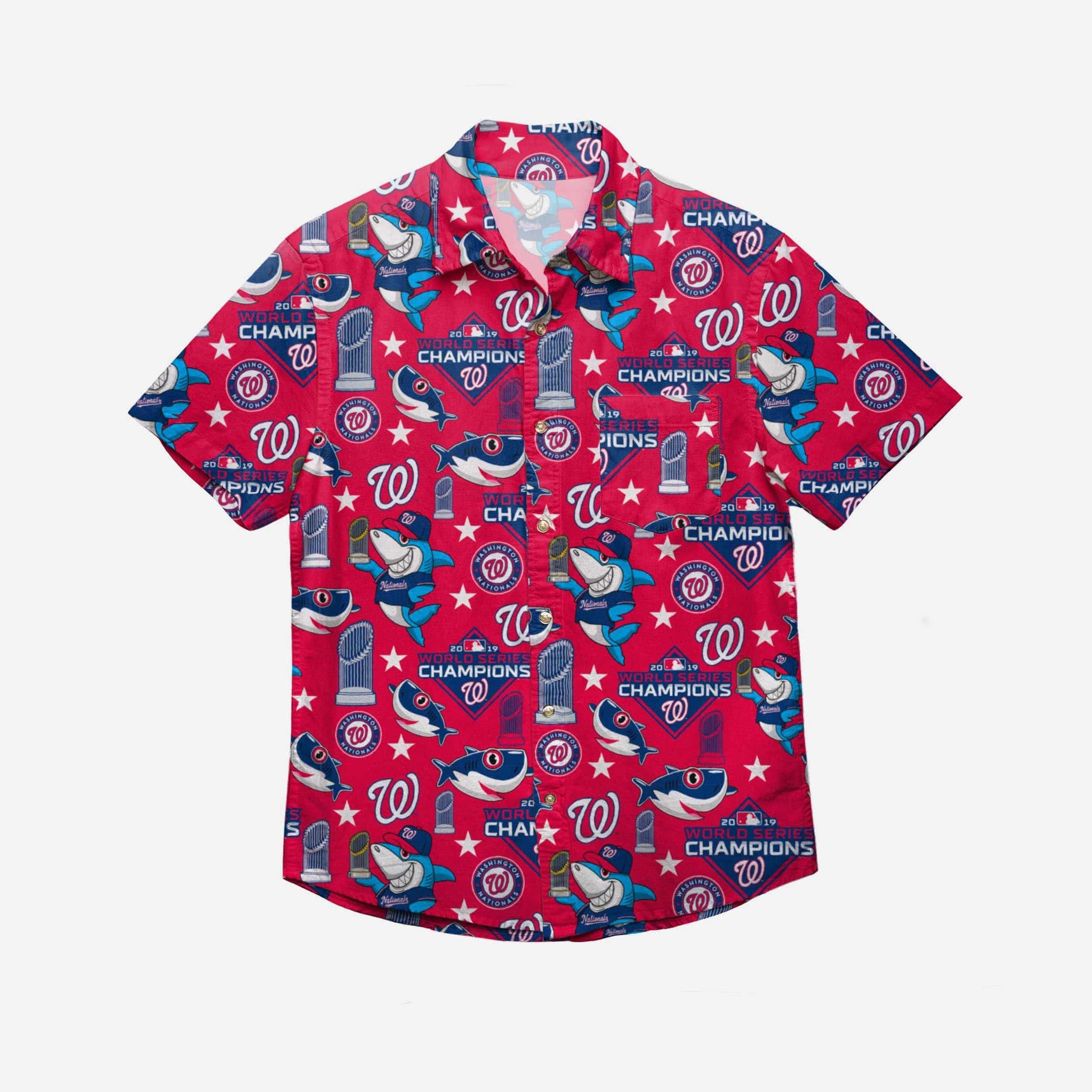 It's time to celebrate in style. Get ready to wow everyone at your next party by showing off your championship fandom and fashion sense when you rock this Washington Nationals 2019 World Series Champions Shark Button Up Shirt.