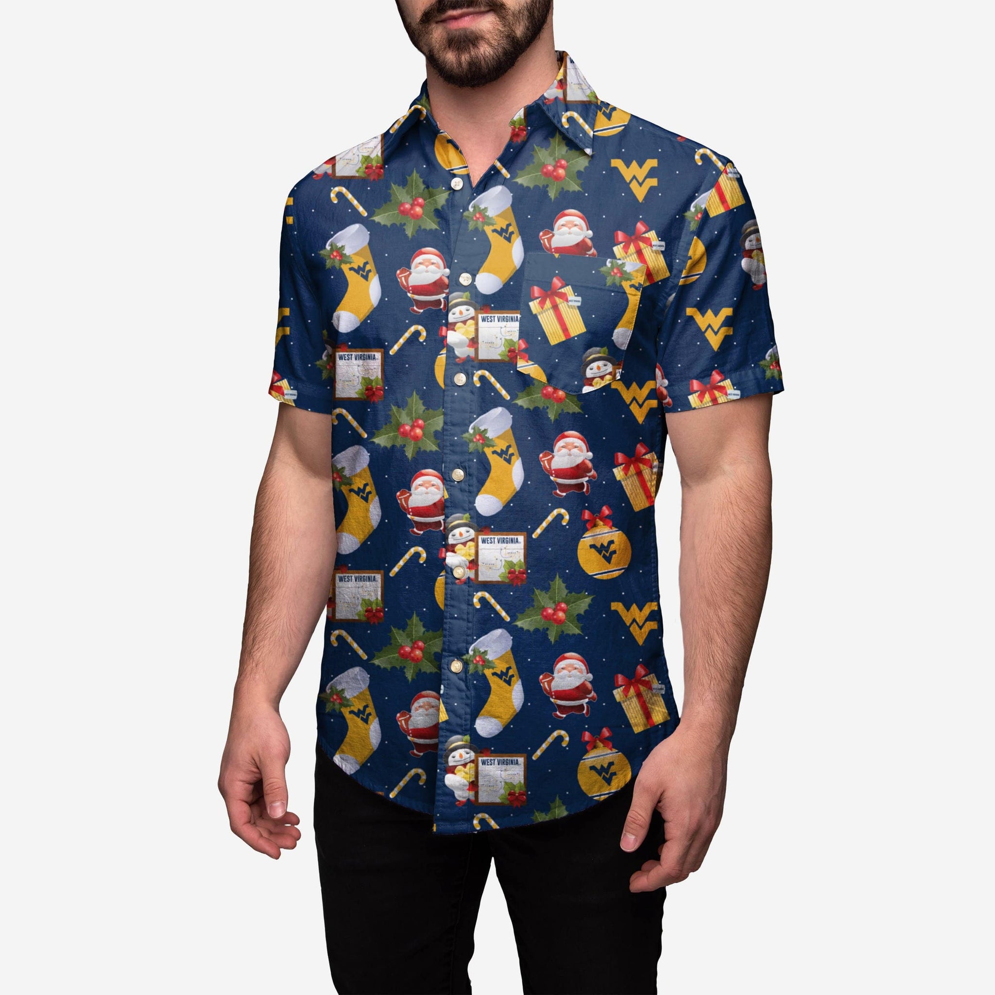Ho-ho-holy moly, you can look fashionable when you make the holiday party rounds this season. How? Easy. Just put on this West Virginia Mountaineers Christmas Explosion Button Up Shirt.