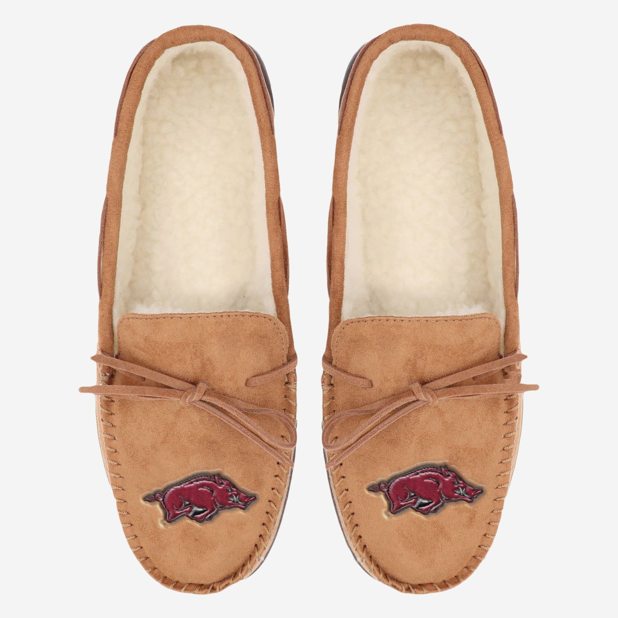 Moccasins? Cool. Comfy slippers? Also cool. Arkansas Razorbacks Moccasin Slippers? Mind = blown. The future is now, friend.