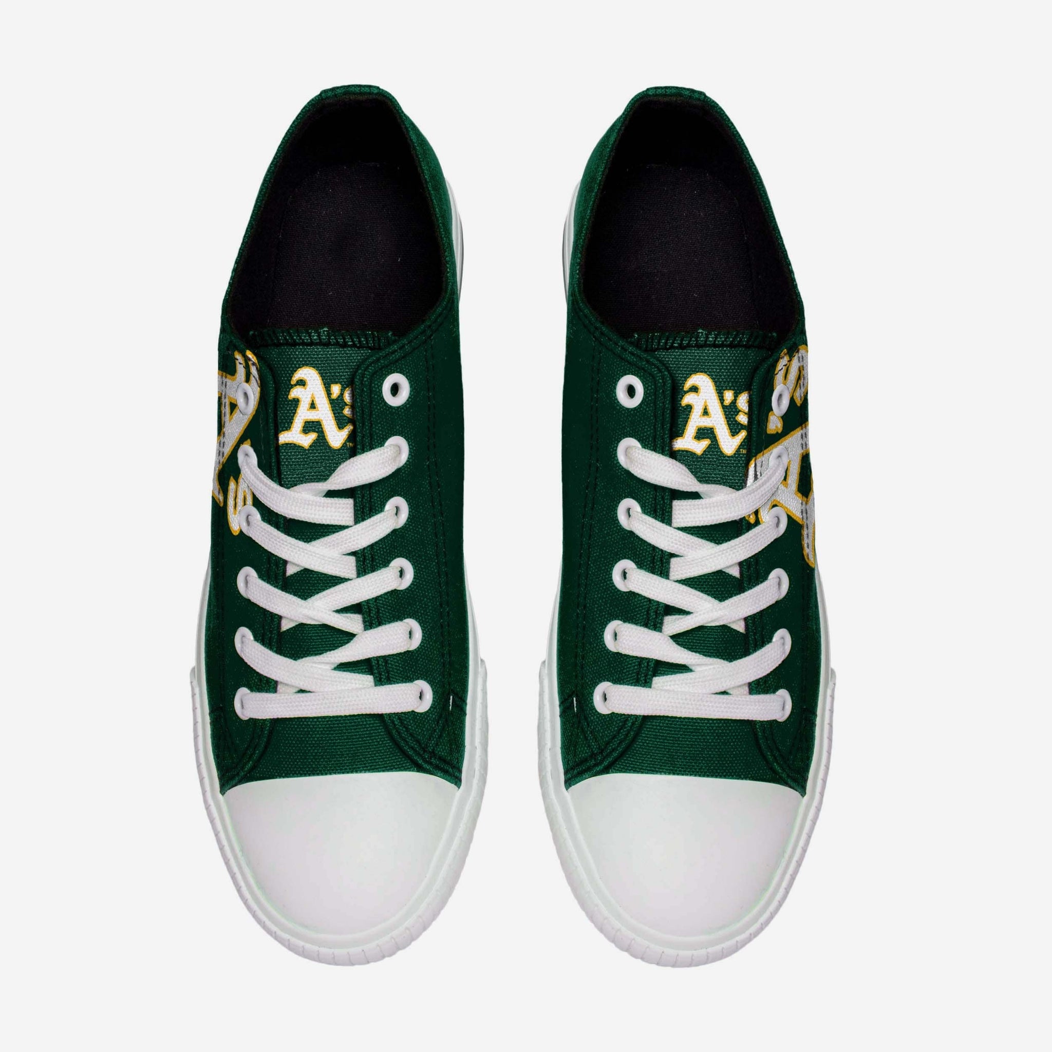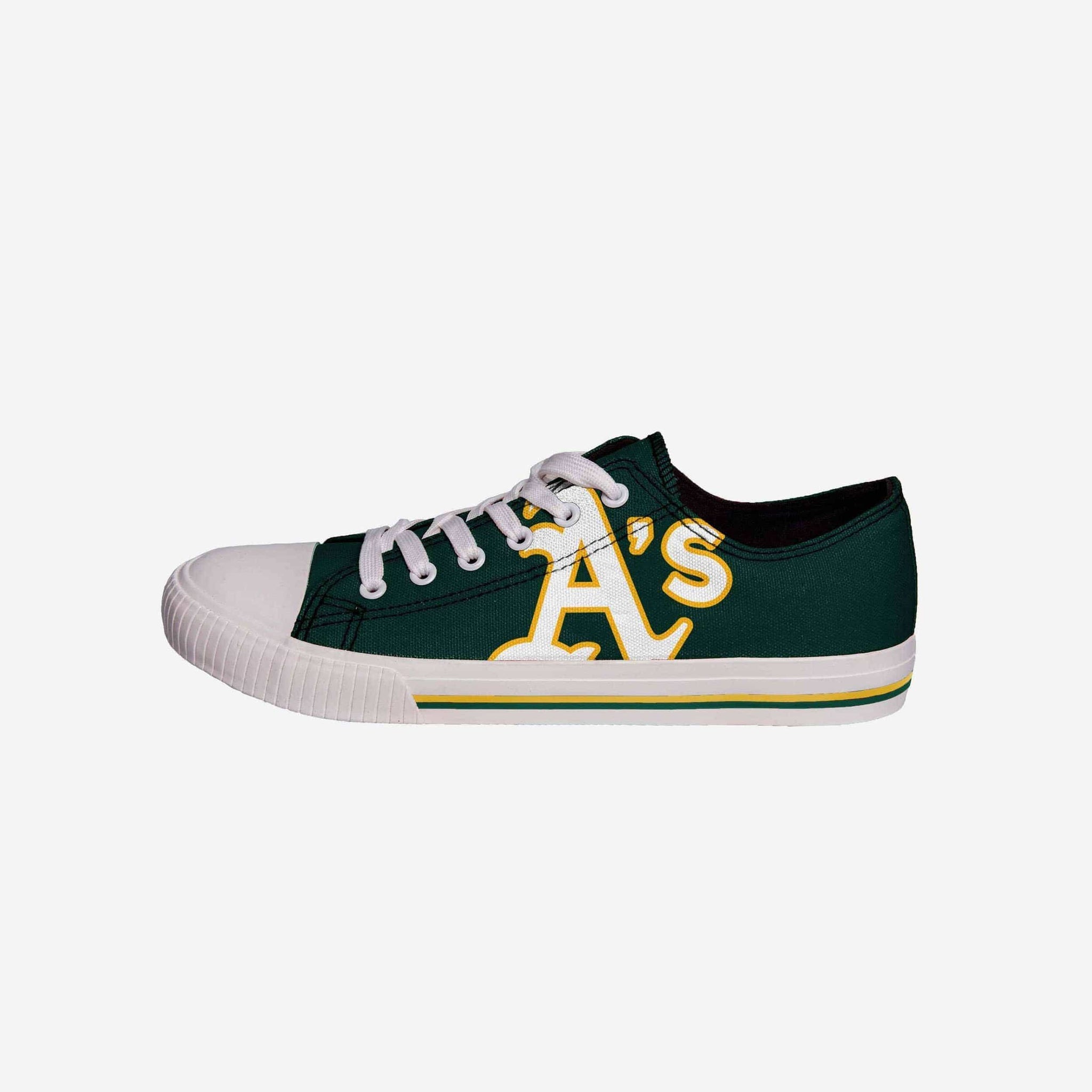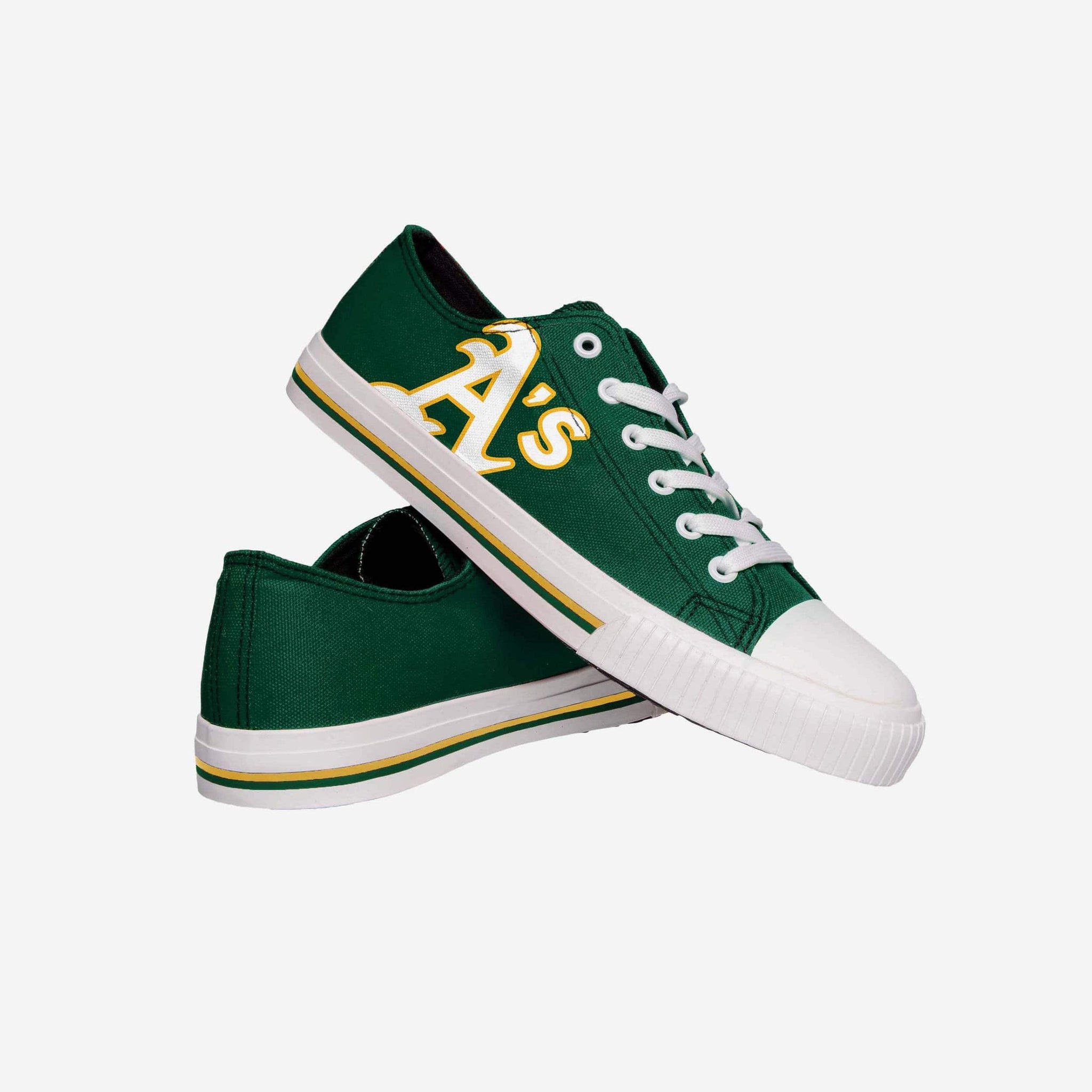 They always say to get your day started on the right foot. But if you're wearing these Oakland Athletics Men's Low Top Big Logo Canvas Shoes, that could be tough. Because they'll look so good that it'll be tough to tell which one is the WRONG foot.