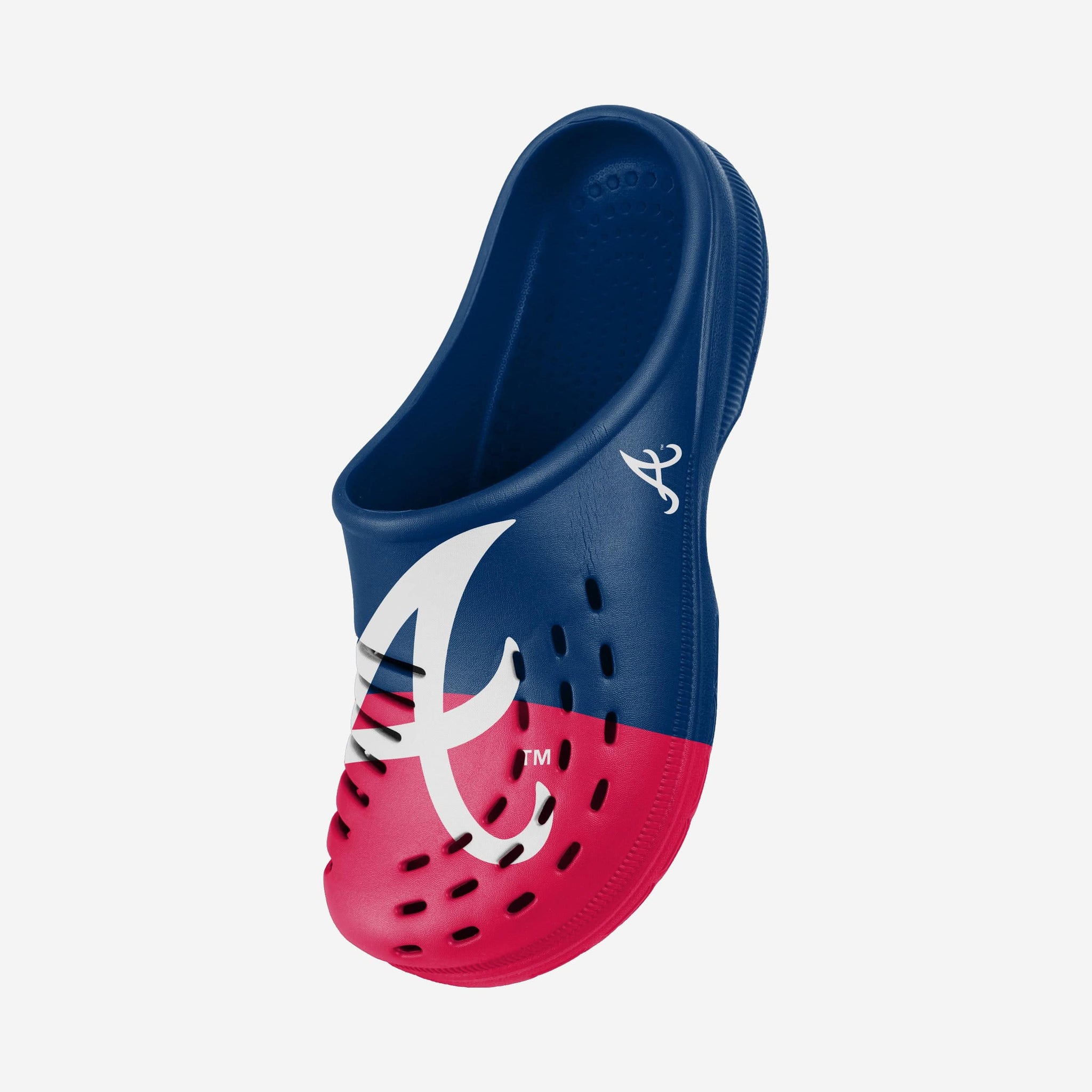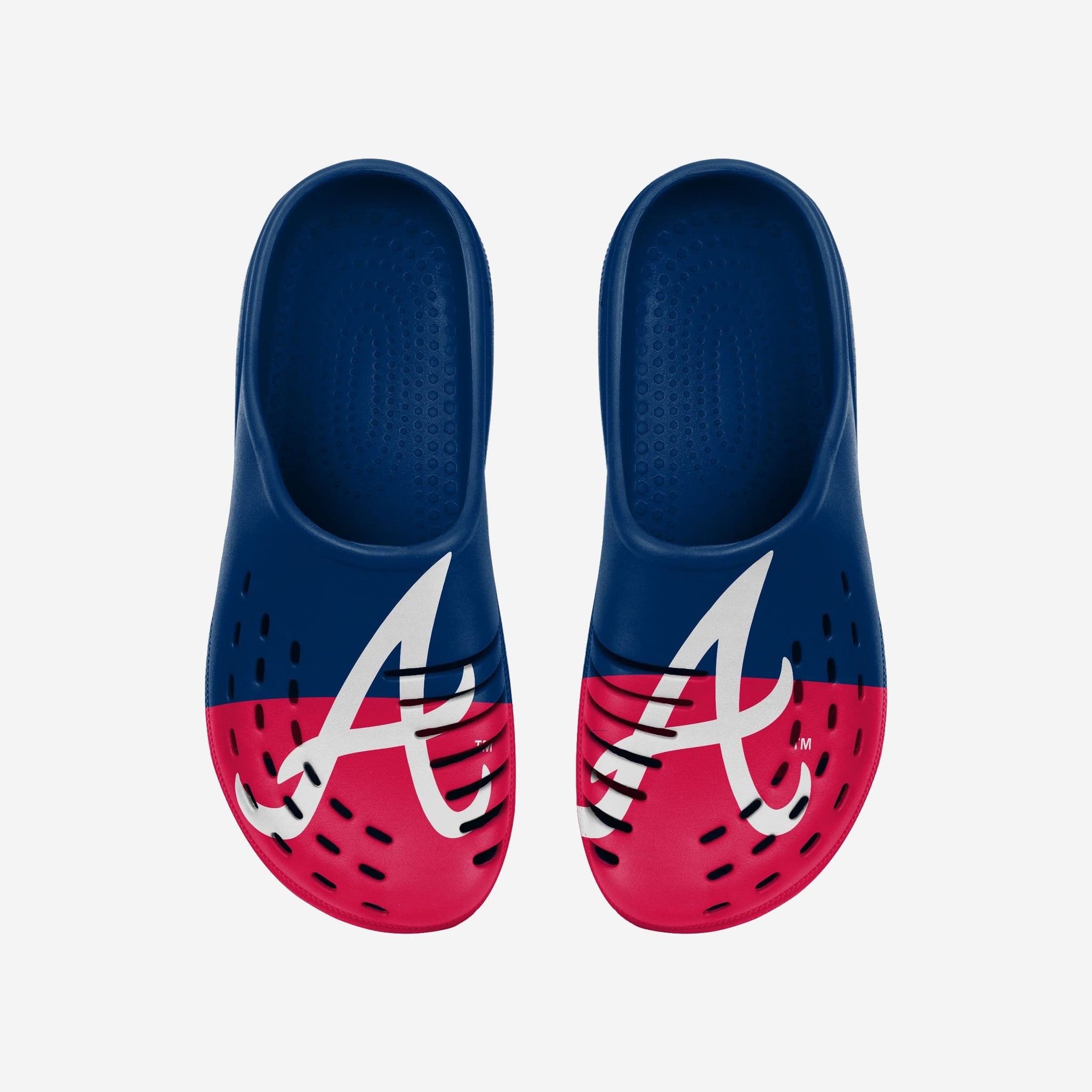 Whether you're walking around the house, in the park, or to your favorite seat in the stadium ready to cheer your team on to victory, do so in style by rocking these Atlanta Braves Colorblock Big Logo Clogs!