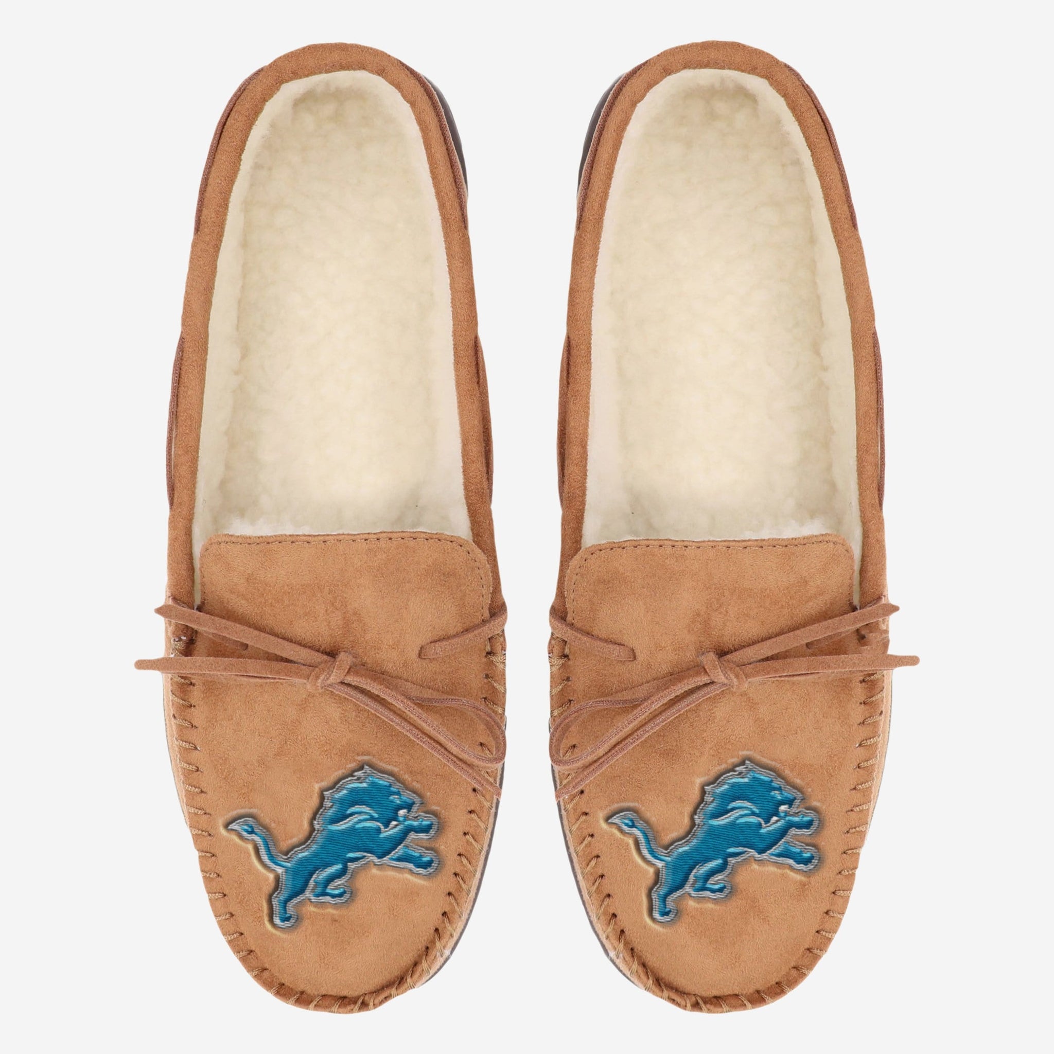 Moccasins? Cool. Comfy slippers? Also cool. Detroit Lions Moccasin Slippers? Mind = blown. The future is now, friend.