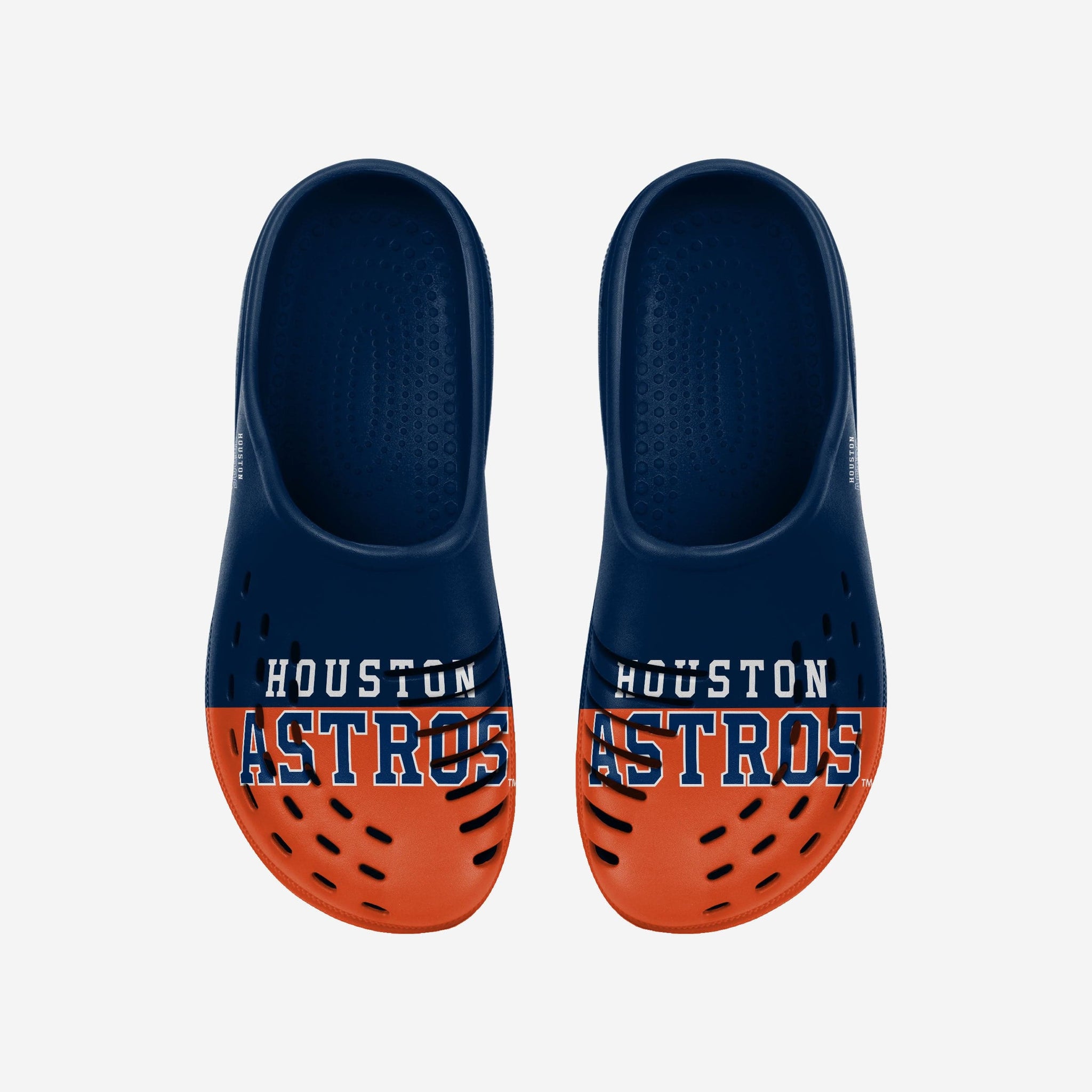 Whether you're walking around the house, in the park, or to your favorite seat in the stadium ready to cheer your team on to victory, do so in style by rocking these Houston Astros Colorblock Big Logo Clogs!