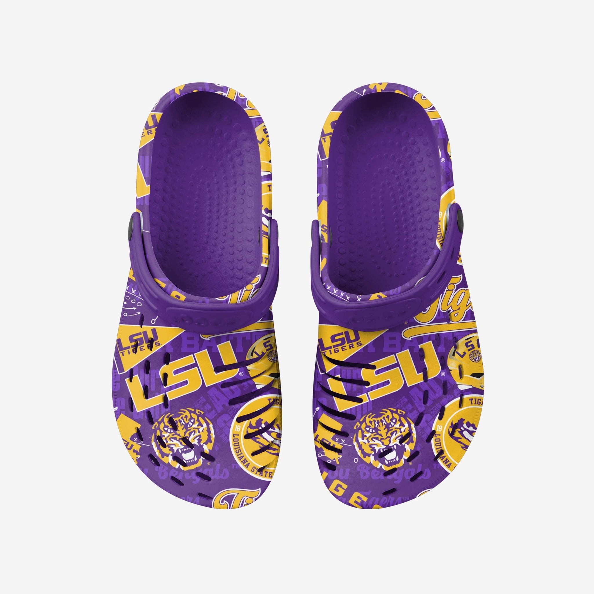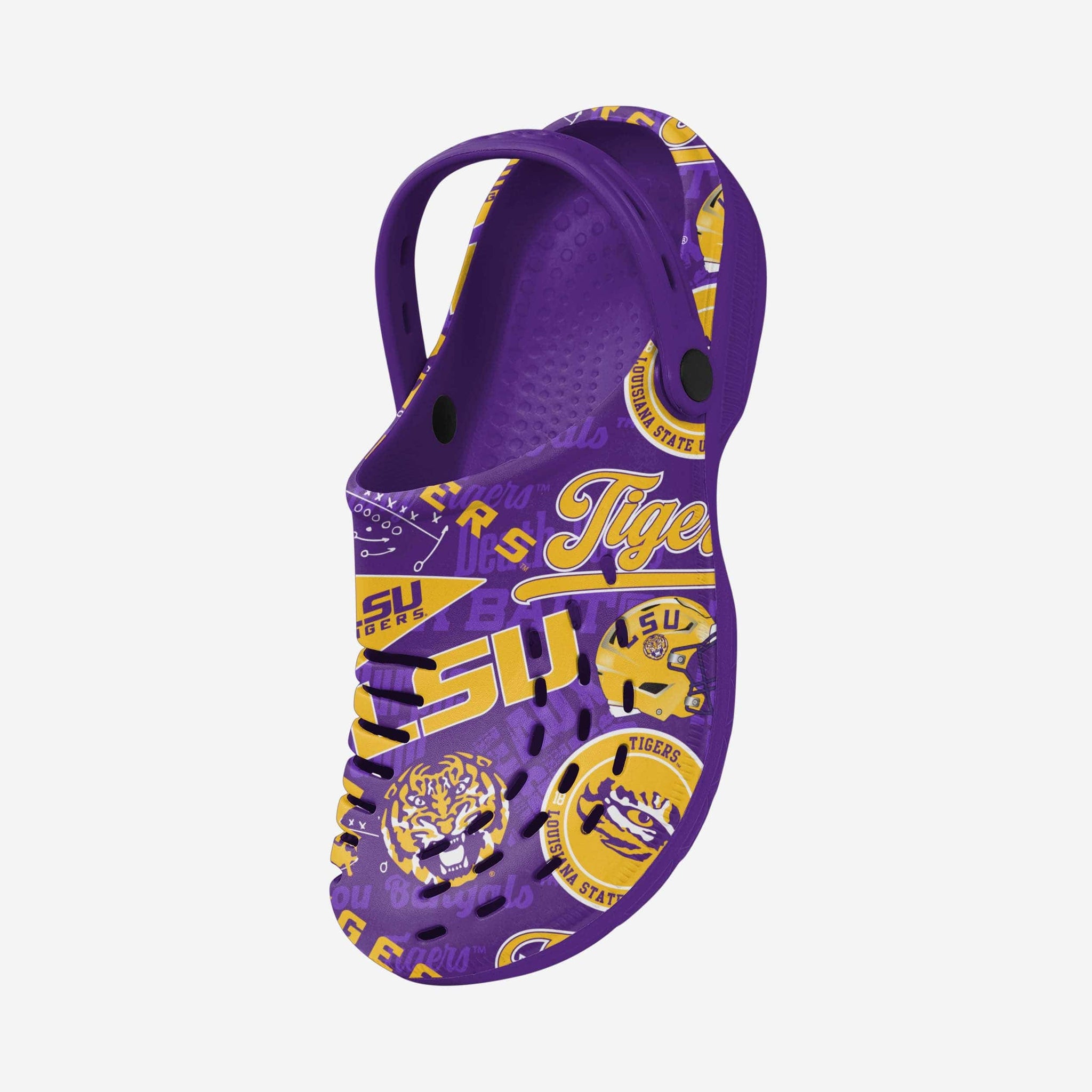 The LSU Tigers Historic Print Clogs with Straps are here to help you take a step into the time machine and celebrate your franchise's glorious history.